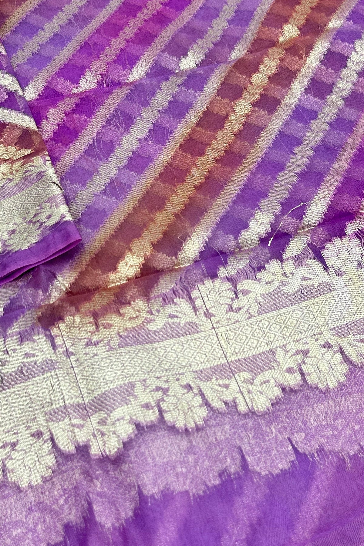 Amethyst Allure: Purple Banarasi Pure Organza Dupatta