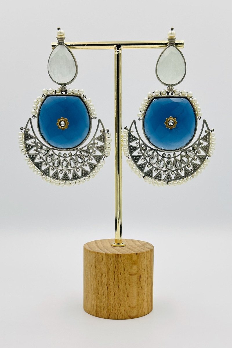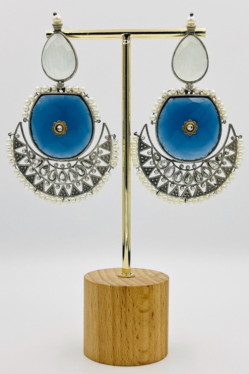 Experience the serene allure of "Azure Dream," a captivating blend of sophistication and oceanic tranquility. These crescent-shaped silver earrings are a tribute to the enigmatic beauty of the sea and sky. Adorned with deep blue crystals that mirror the depth of the ocean, they are complemented by the subtle elegance of classic pearls. Each crystal catches the light, reflecting shades of the sea from navy to sapphire, while the pearls add a timeless grace. Perfect for any occasion that calls for a touch of elegance and the serene beauty of blue, these earrings are a must-have for those who wish to carry a piece of the ocean's mystery with them.