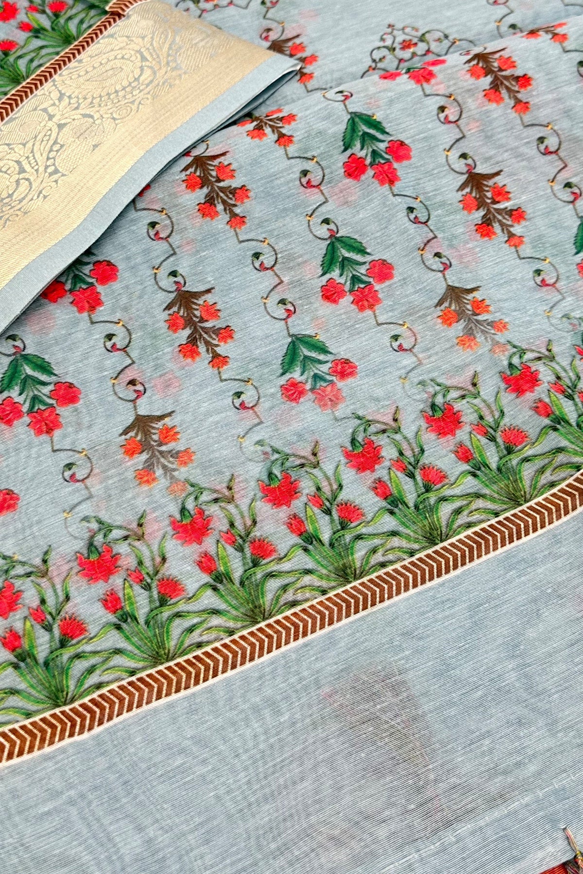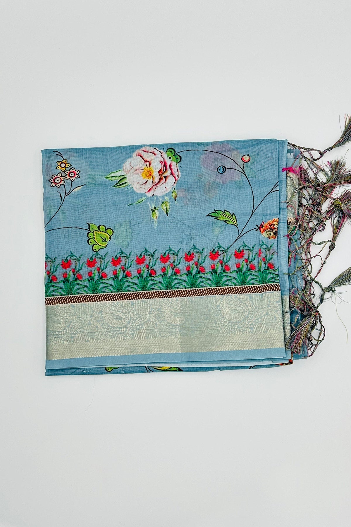 Azure Whisper: Pastel Blue Dupatta with Elegant Digital Prints - swadeshsouq.com