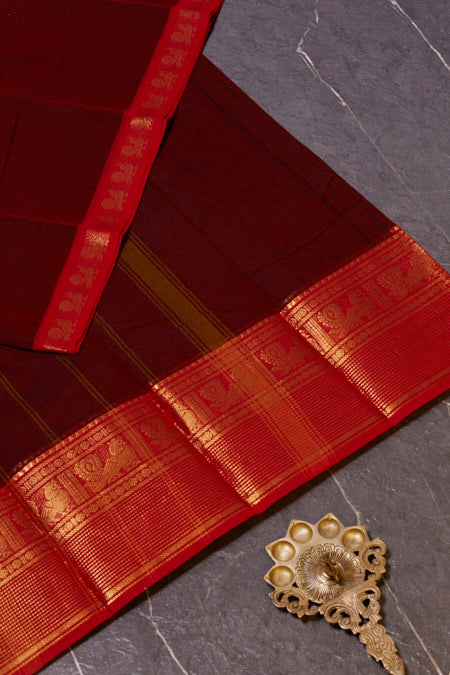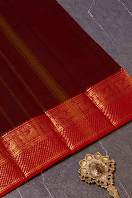 Beautiful Dark Brown Pure Cotton Saree with Red Borders