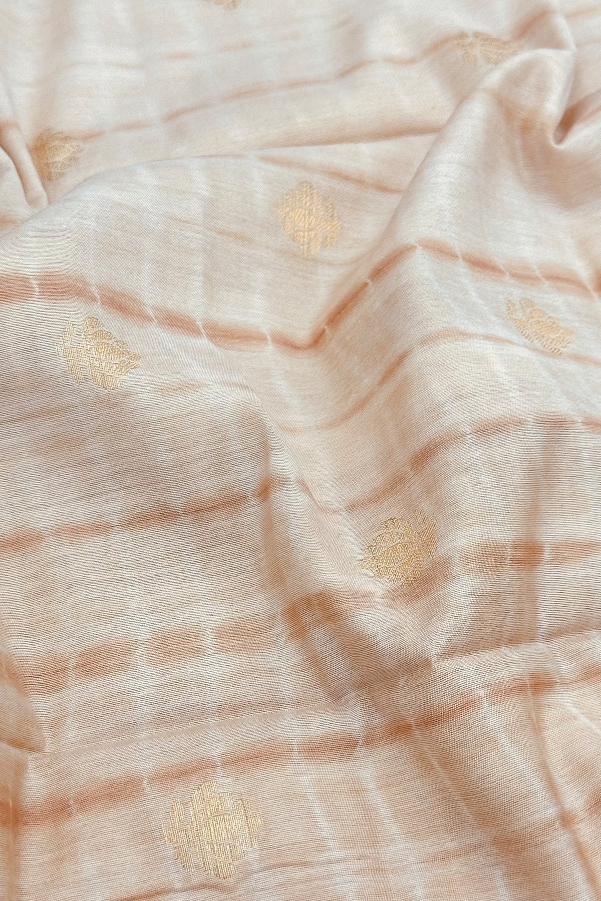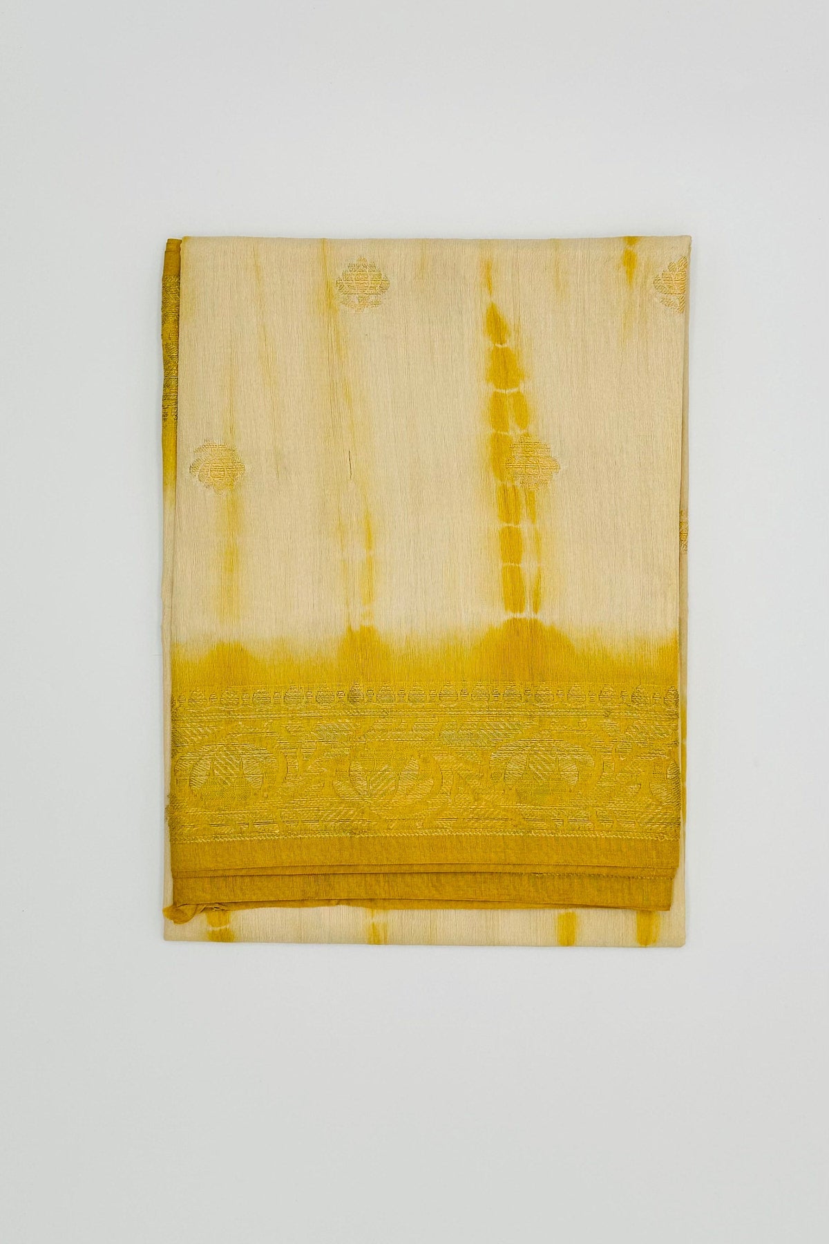 Wrap yourself in the subtle charm of our Almond Whisper Chanderi Silk Dupatta. Expertly crafted using the Shibori dyeing technique, this elegant accessory reveals a soothing beige hue, reminiscent of the gentle tones of almond shells. The distinctive Shibori patterns lend a delicate texture, infusing the fabric with depth and artistic flair. Made from luxurious Chanderi silk, this dupatta flows gracefully, adding a touch of serene sophistication to your attire. Perfect for those who appreciate the beauty of muted colors and traditional craftsmanship, this dupatta is a celebration of elegant simplicity and timeless elegance.