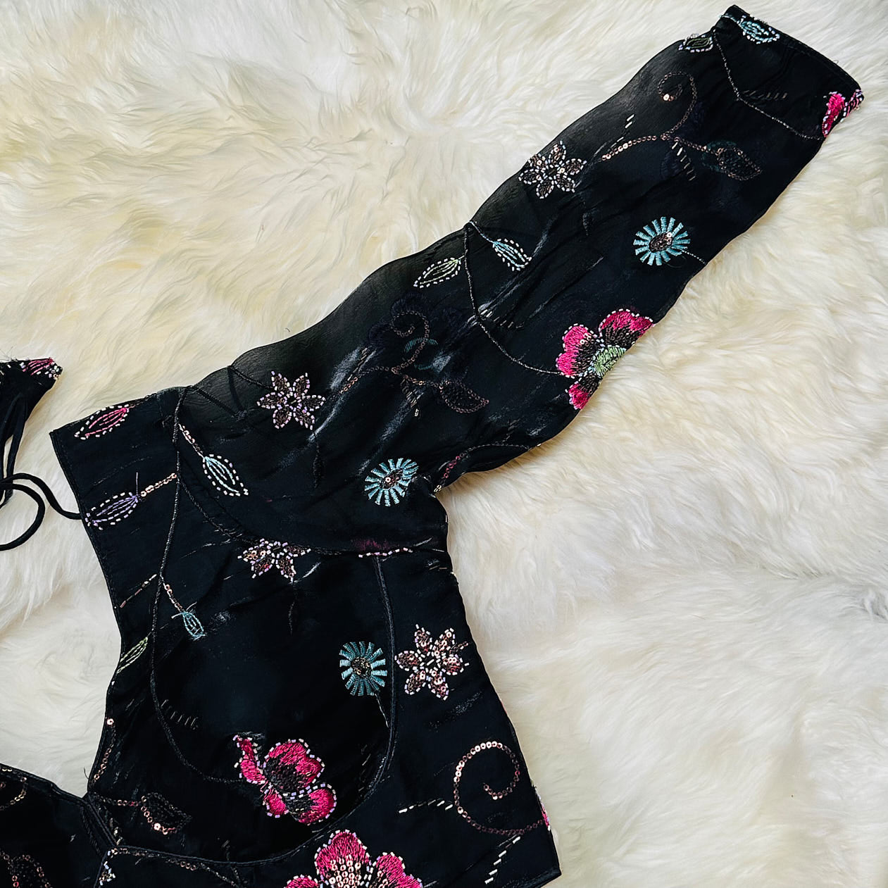 Slight variations in color may occur due to lighting and screen resolution. As the blouse is embellished with delicate bead work and crafted from shiny fabric, professional dry cleaning is strongly advised to maintain its elegance and longevity.