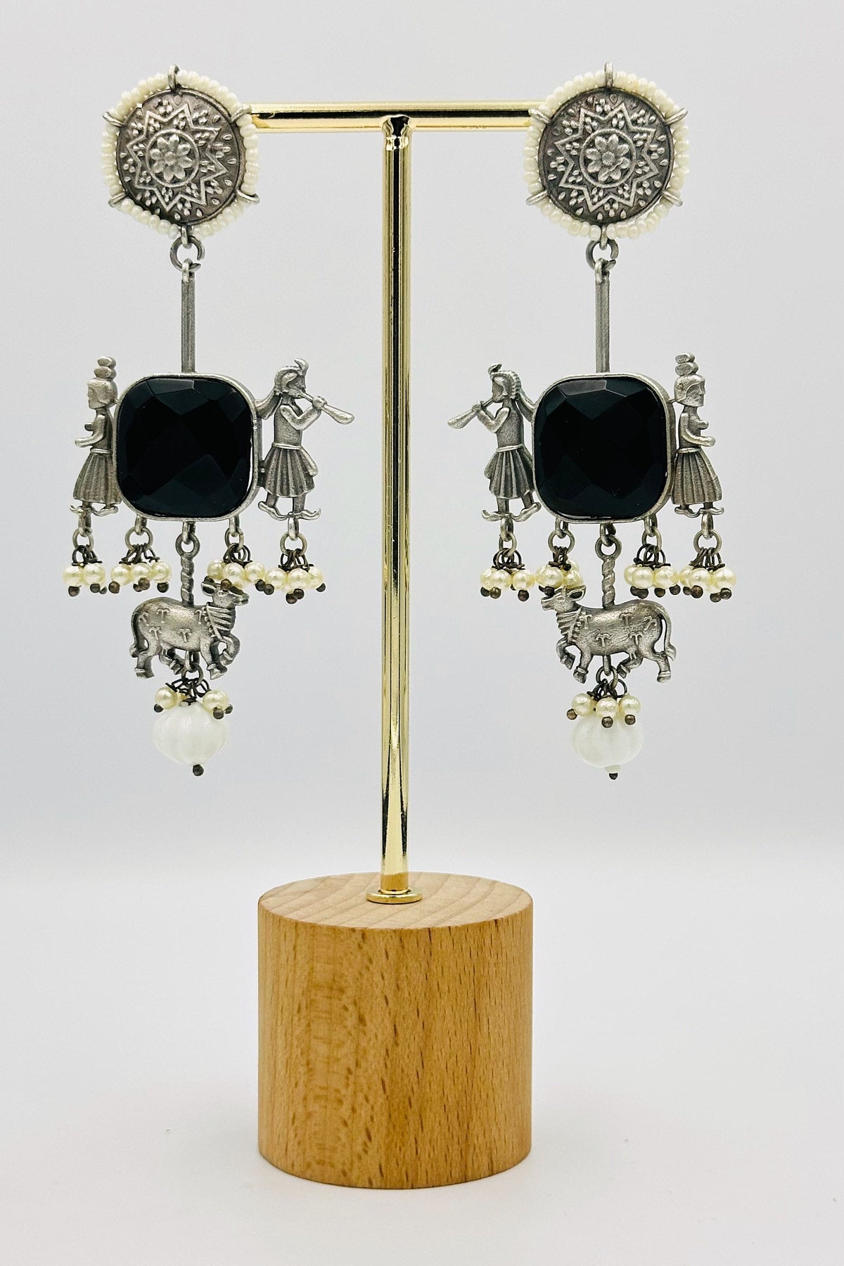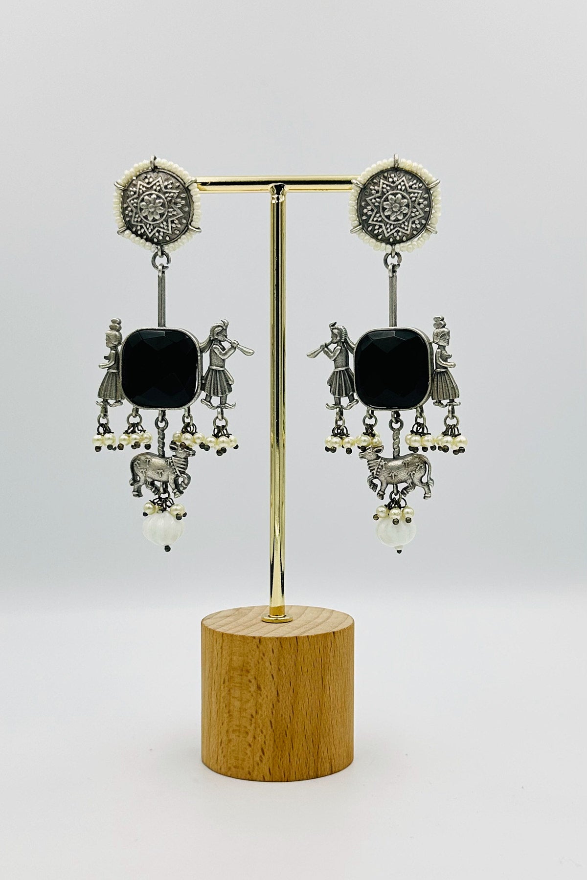 Black Silver Danglers with Artistic Intrigue - swadeshsouq.com