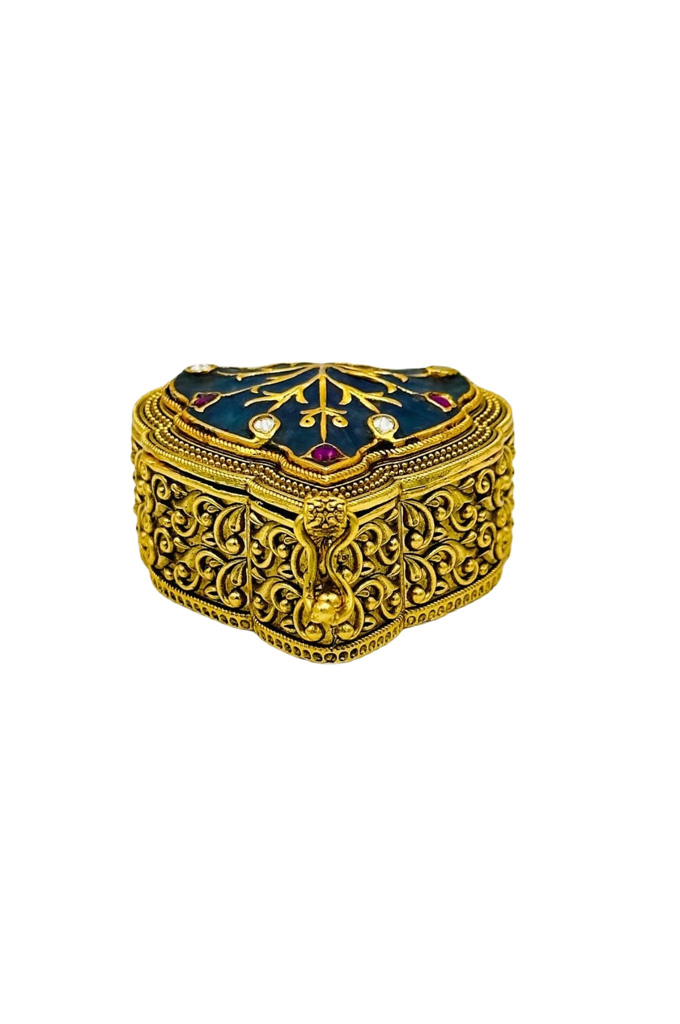 Blue Jadau Kumkum Box with Nagas Craftsmanship and Filigree Delights