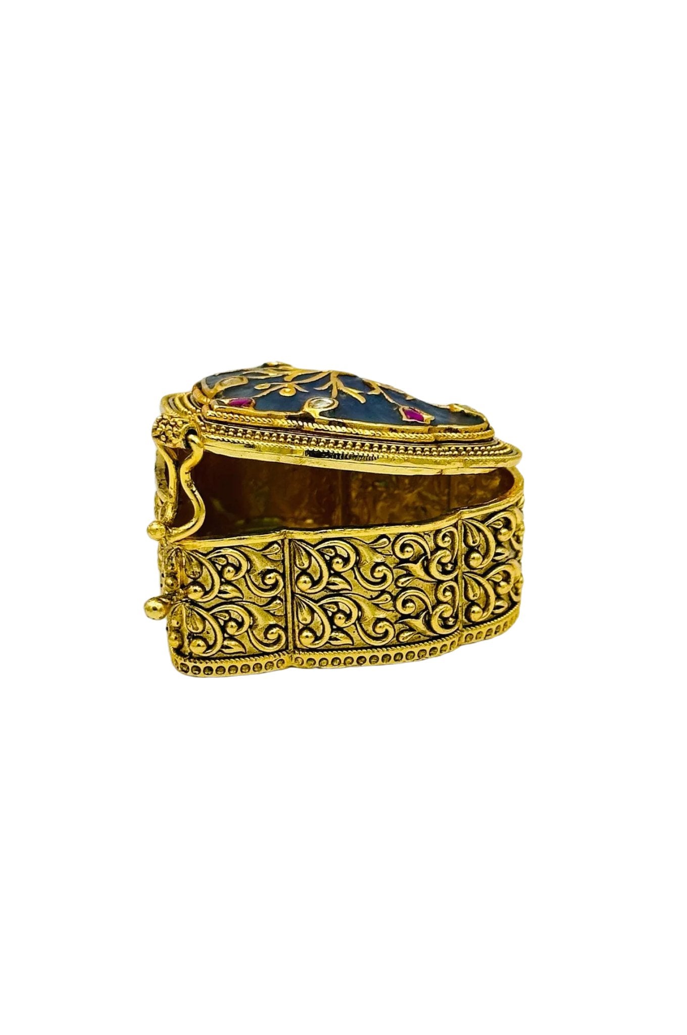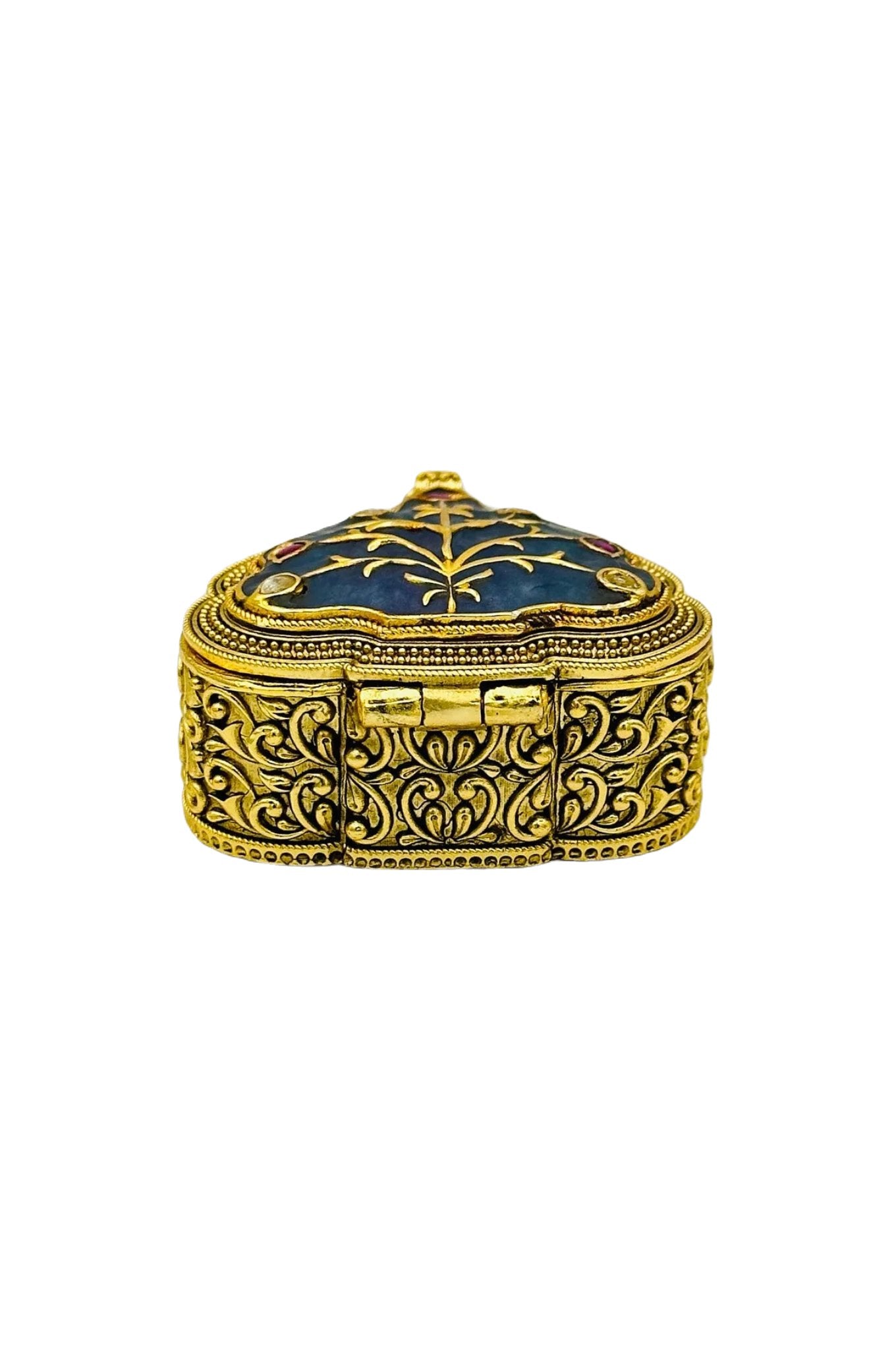 Blue Jadau Kumkum Box with Nagas Craftsmanship and Filigree Delights - swadeshsouq.com