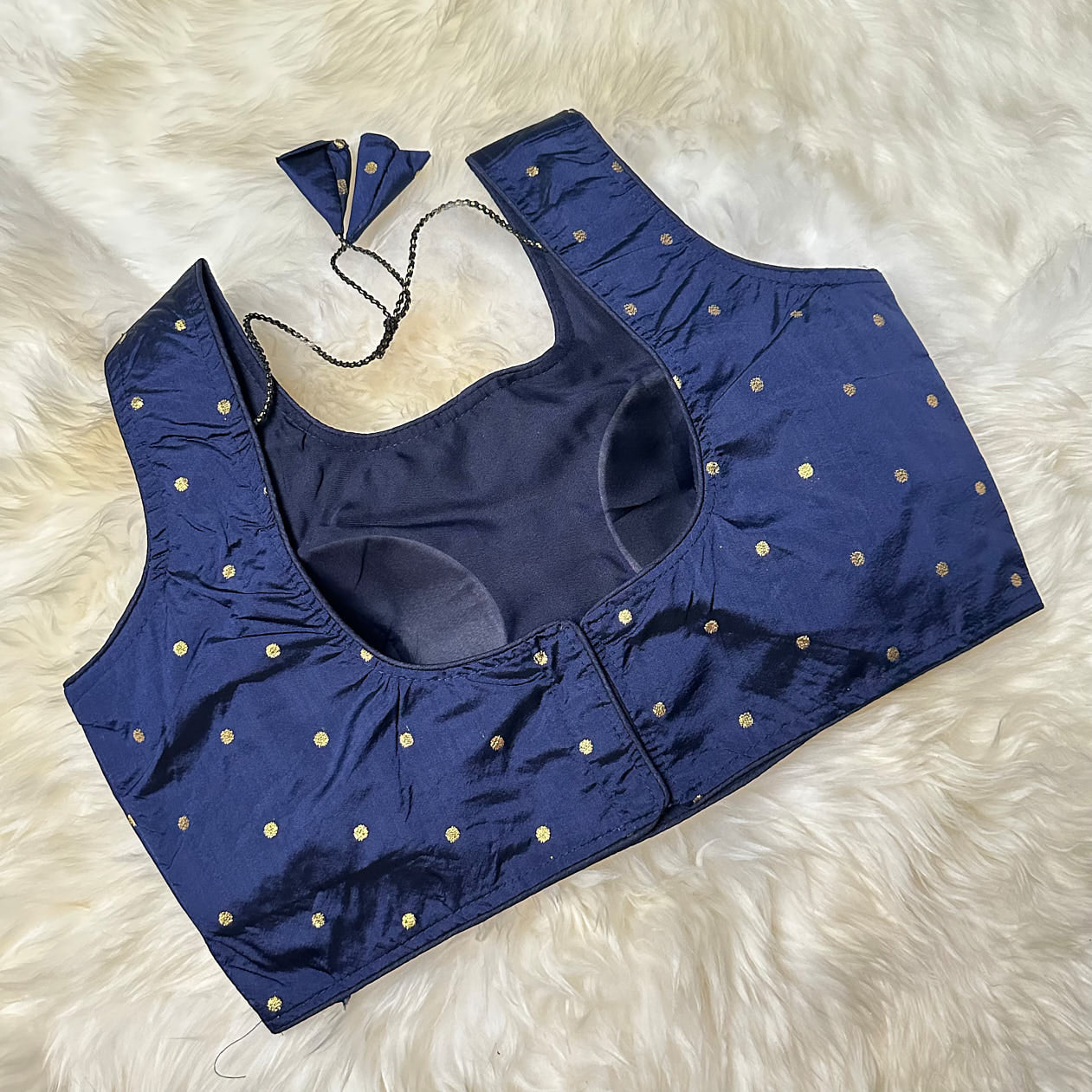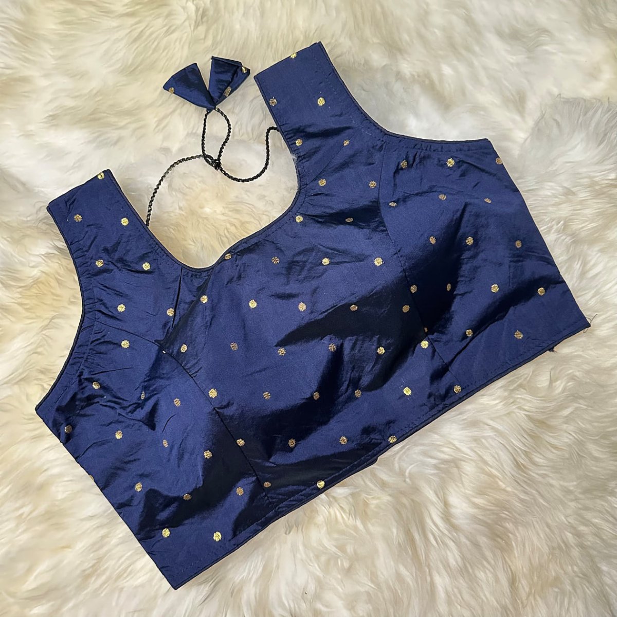 Blue Silk Blouse with Intricate Golden Zari Butta – Elegant & Timeless