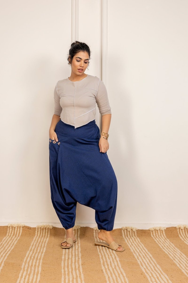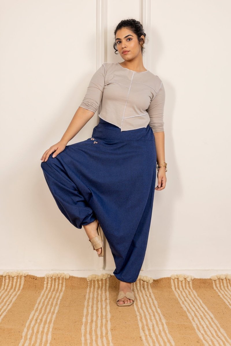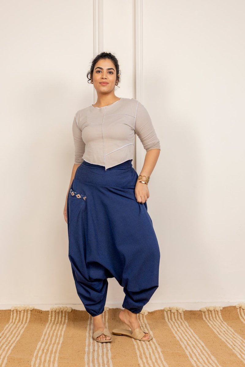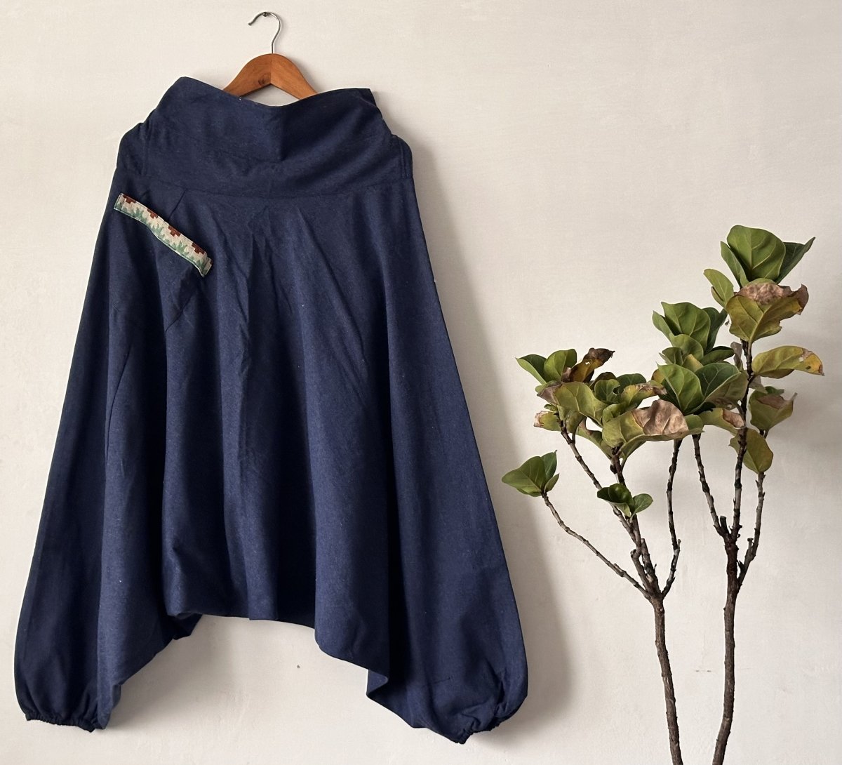 Bring a touch of bohemian charm to your wardrobe with our Navy Blue Bohemian Harem Pants featuring a unique side patch. Designed for comfort and effortless style, these pants have a relaxed fit that makes them perfect for yoga sessions, casual outings, or simply lounging at home. Crafted from soft and breathable cotton, these harem pants are ideal for the warm UAE climate, ensuring you stay cool and comfortable all day long.