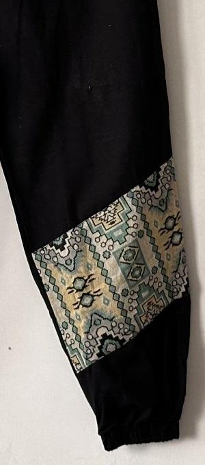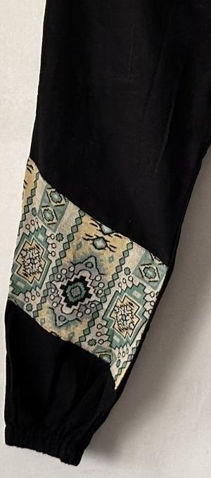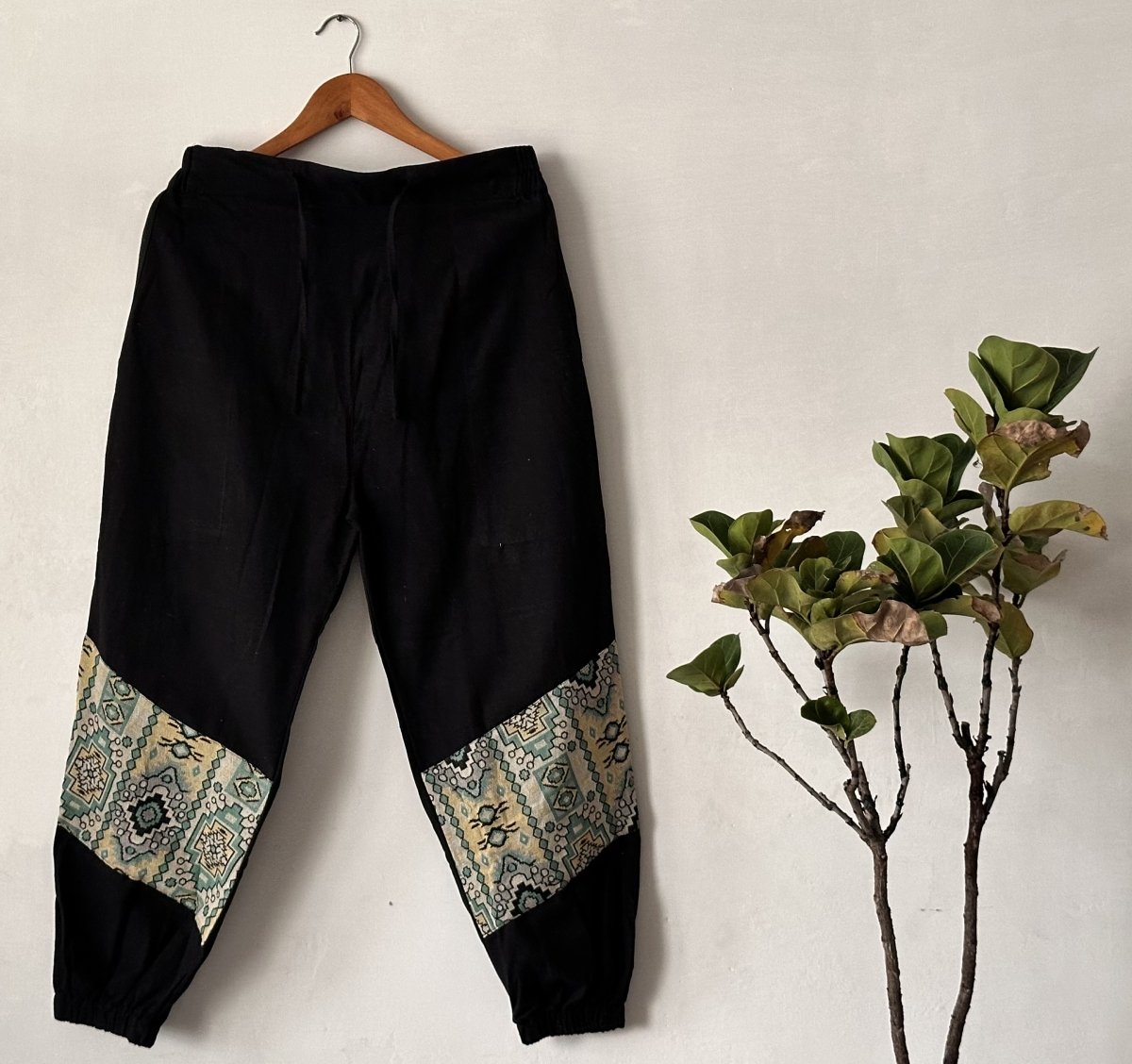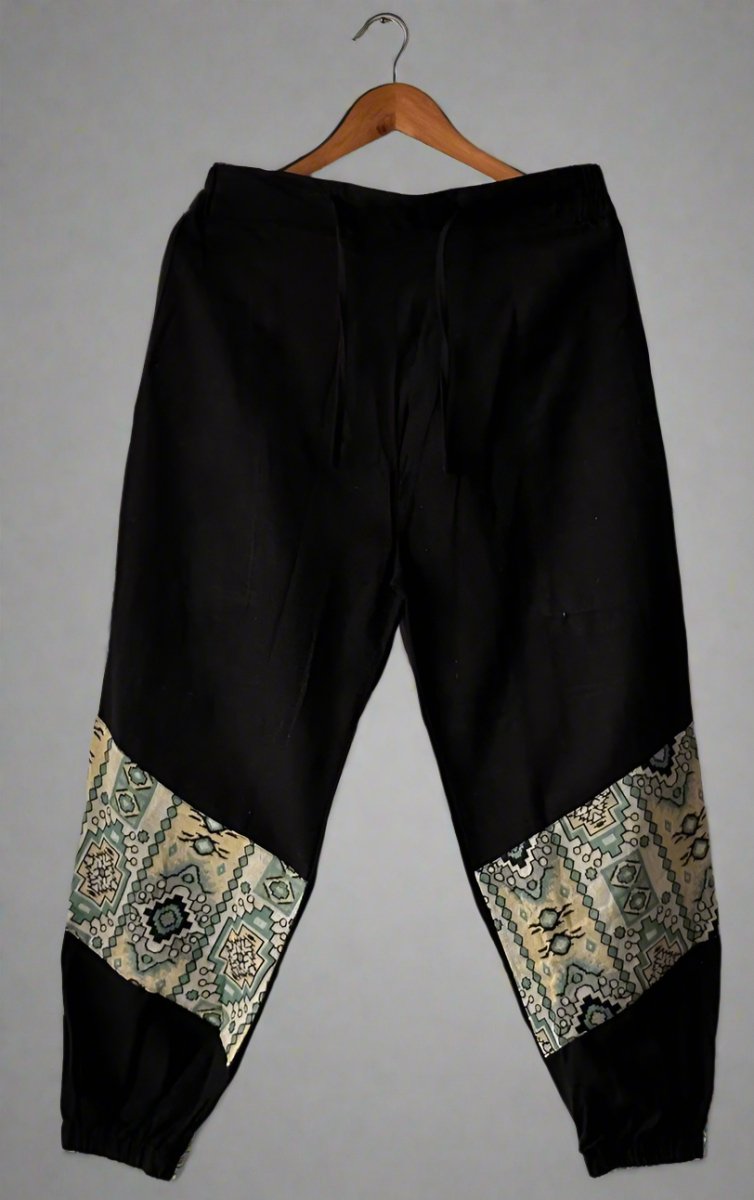 Elevate your casual wardrobe with our Black Bohemian Patchwork Joggers, designed for comfort and style. These joggers feature a striking contrast of intricate ethnic patchwork at the lower leg, adding a touch of uniqueness to a classic black design. Crafted from breathable, high-quality cotton, they’re perfect for yoga, casual outings, or lounging at home.