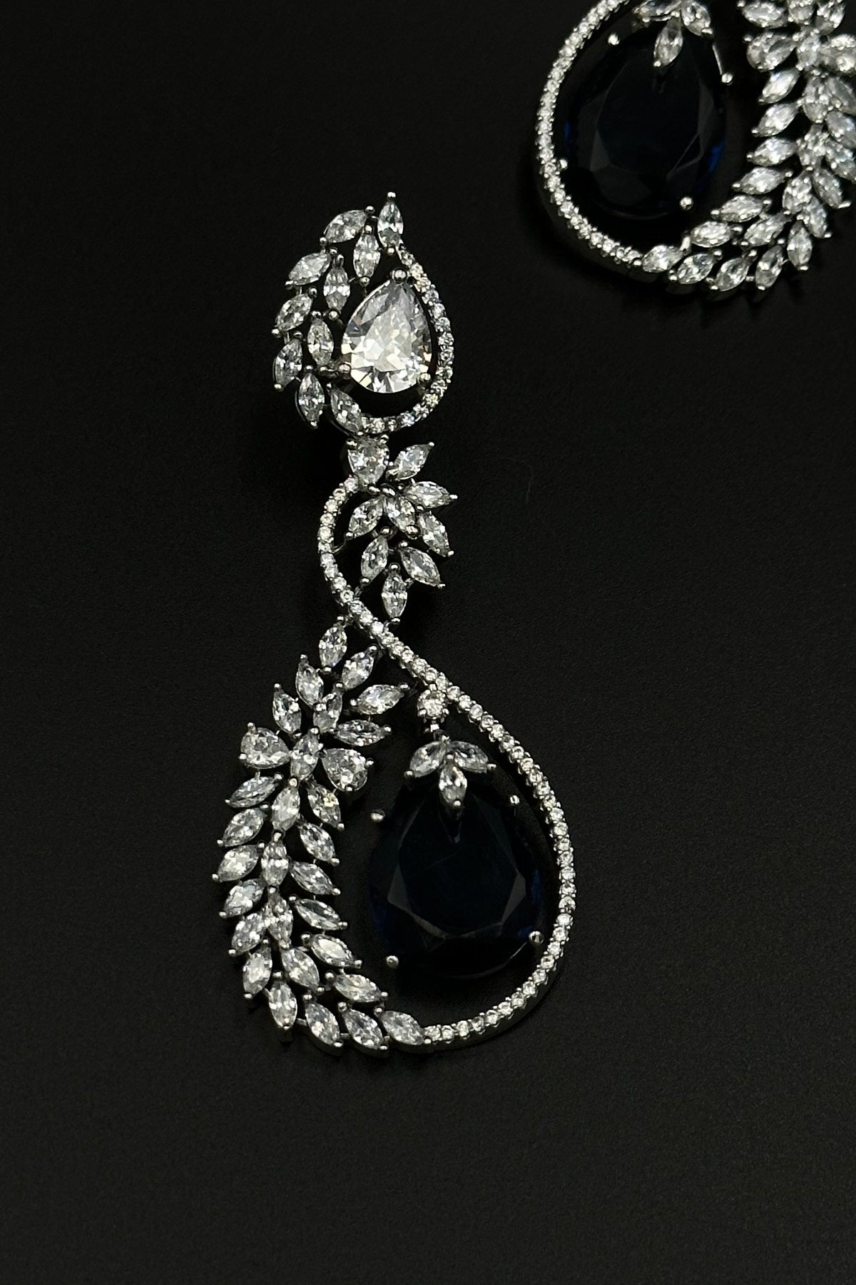 Elevate your style with our exquisite Blue Sapphire Danglers, expertly crafted with tiny white CZ stones to create a mesmerizing design that will leave you spellbound. The center Blue Sapphire adds an extra touch of elegance and luxury, making these danglers a must-have in your jewelry collection. Crafted with the highest quality materials, these danglers are built to last and will remain a staple in your jewelry collection for years to come. The stunning white CZ stones reflect light from every angle, creating a dazzling sparkle that will turn heads wherever you go.