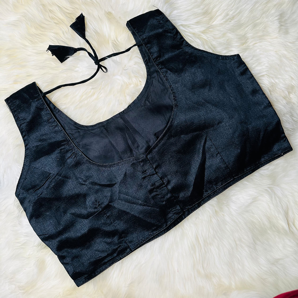 Classic Black Extra Large Silk Blouse – Unpadded, Fits Up to 48 - swadeshsouq.com