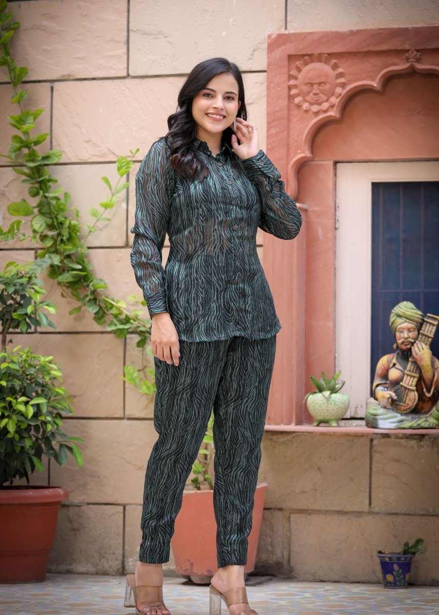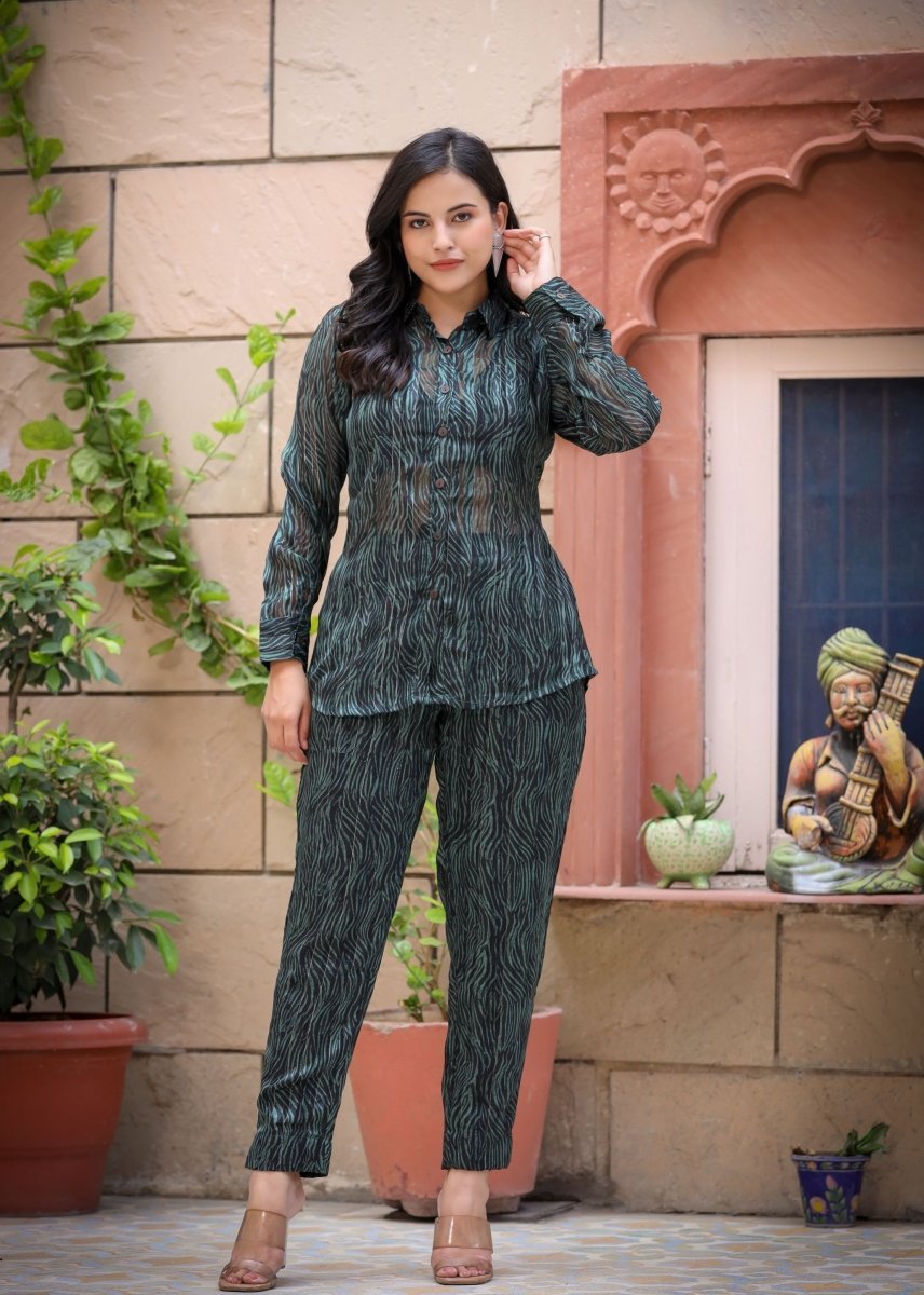 Elevate your style with our Elegant Chiffon Printed Co-Ord Set, designed for the modern woman who values both comfort and sophistication. This stunning ensemble features delicate, vibrant prints on soft, flowing chiffon that drapes beautifully against your skin. The lightweight, smooth texture ensures all-day comfort, making it perfect for everything from brunch dates to evening events. The set includes a chic top and matching bottoms that effortlessly blend together, offering a polished yet relaxed look. Embrace versatility and grace with this exquisite co-ord set, and let your individuality shine through every wear. Whether dressed up or down, this piece is sure to make a lasting impression!