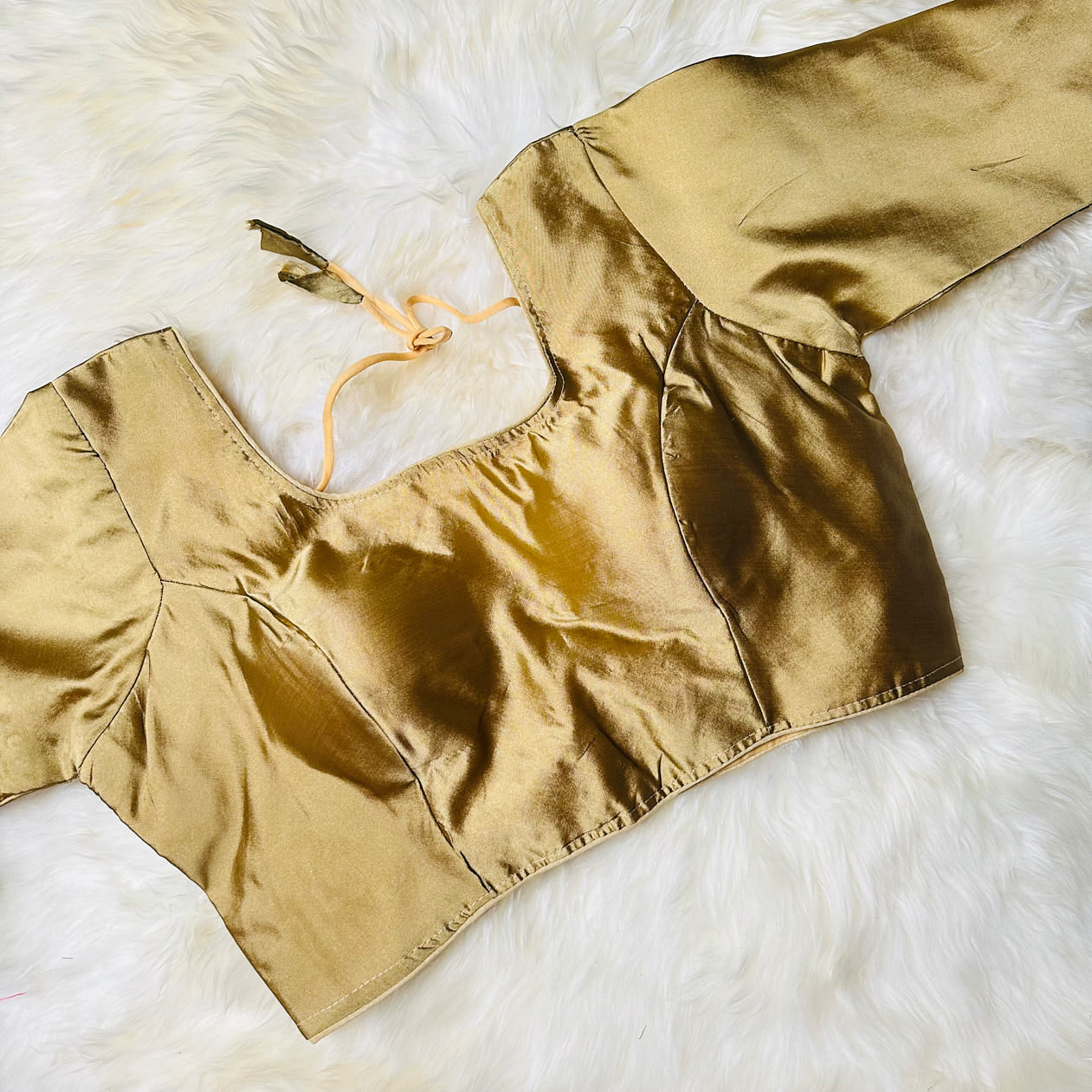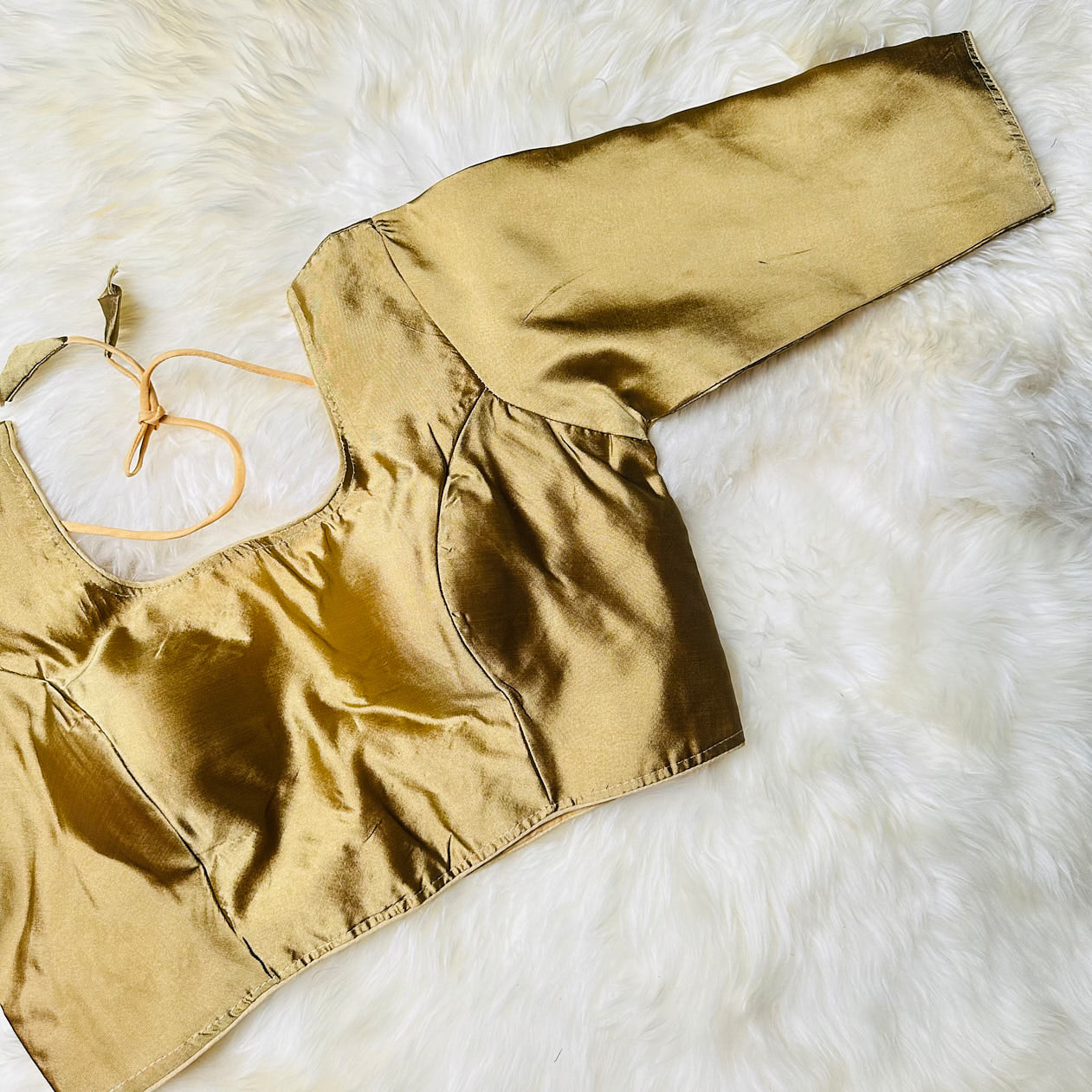 Elegant Golden Cream Silk Long - Sleeve Blouse – Perfect Fit (32 to 38) – Classic & Versatile - swadeshsouq.com