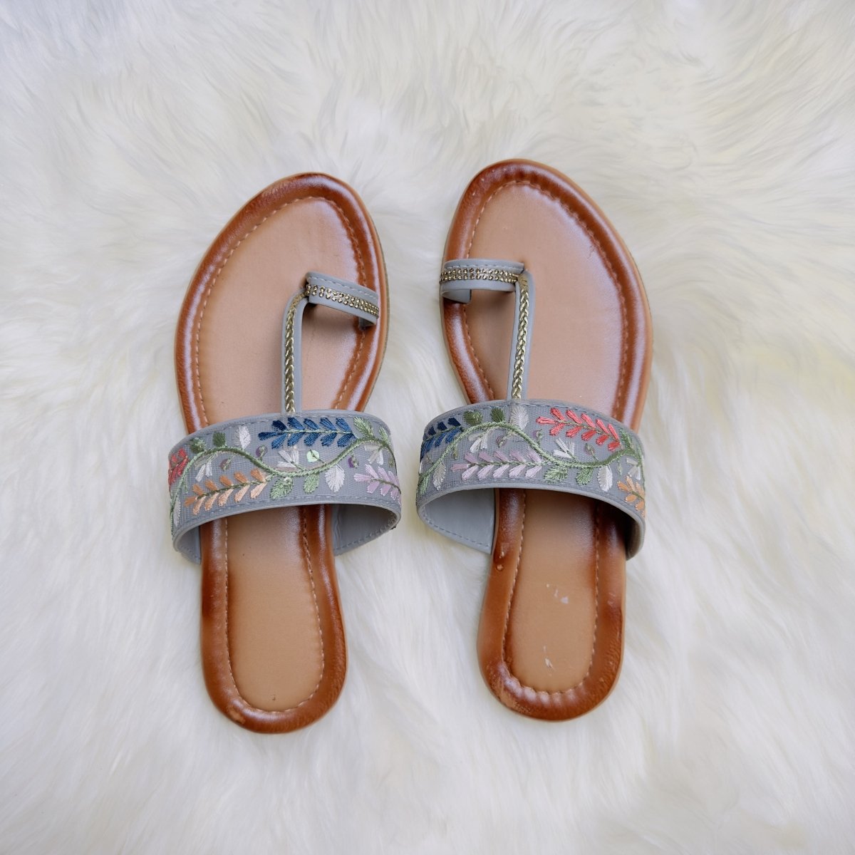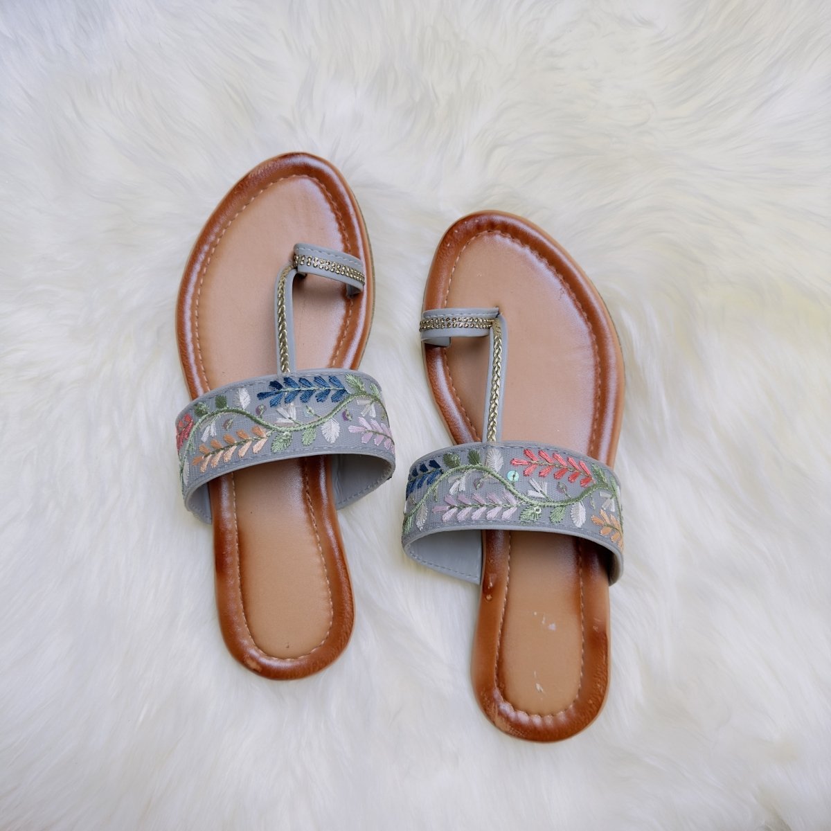 Elegant Grey Hand - Embroidered Sandals – Subtle Floral Grace - swadeshsouq.com