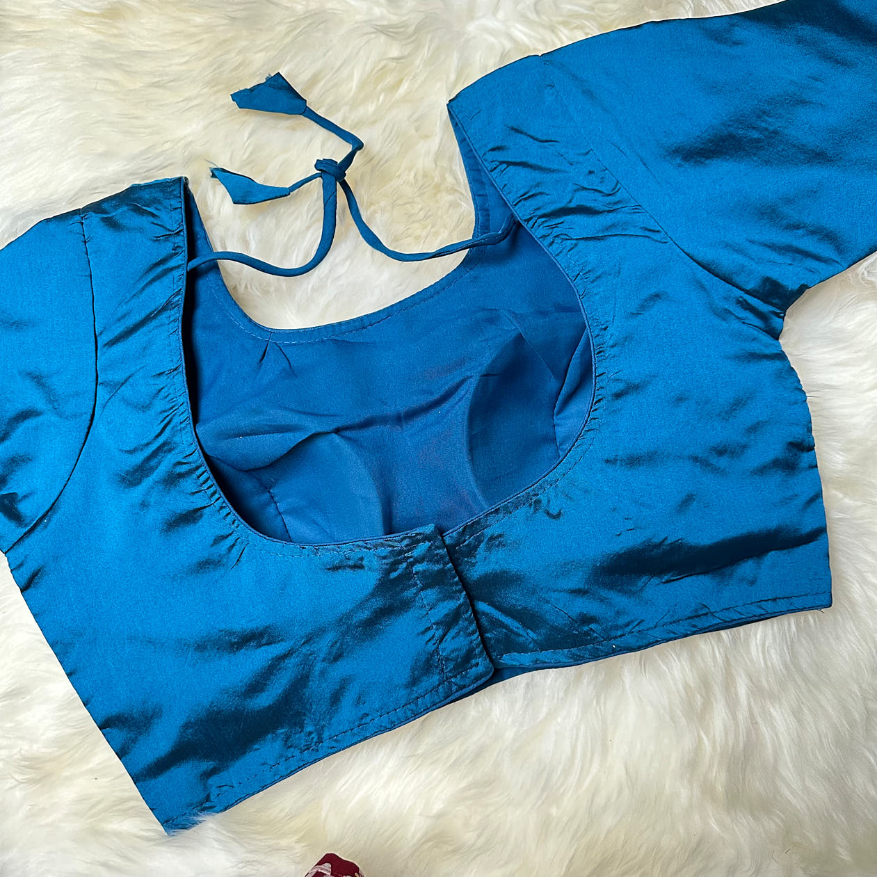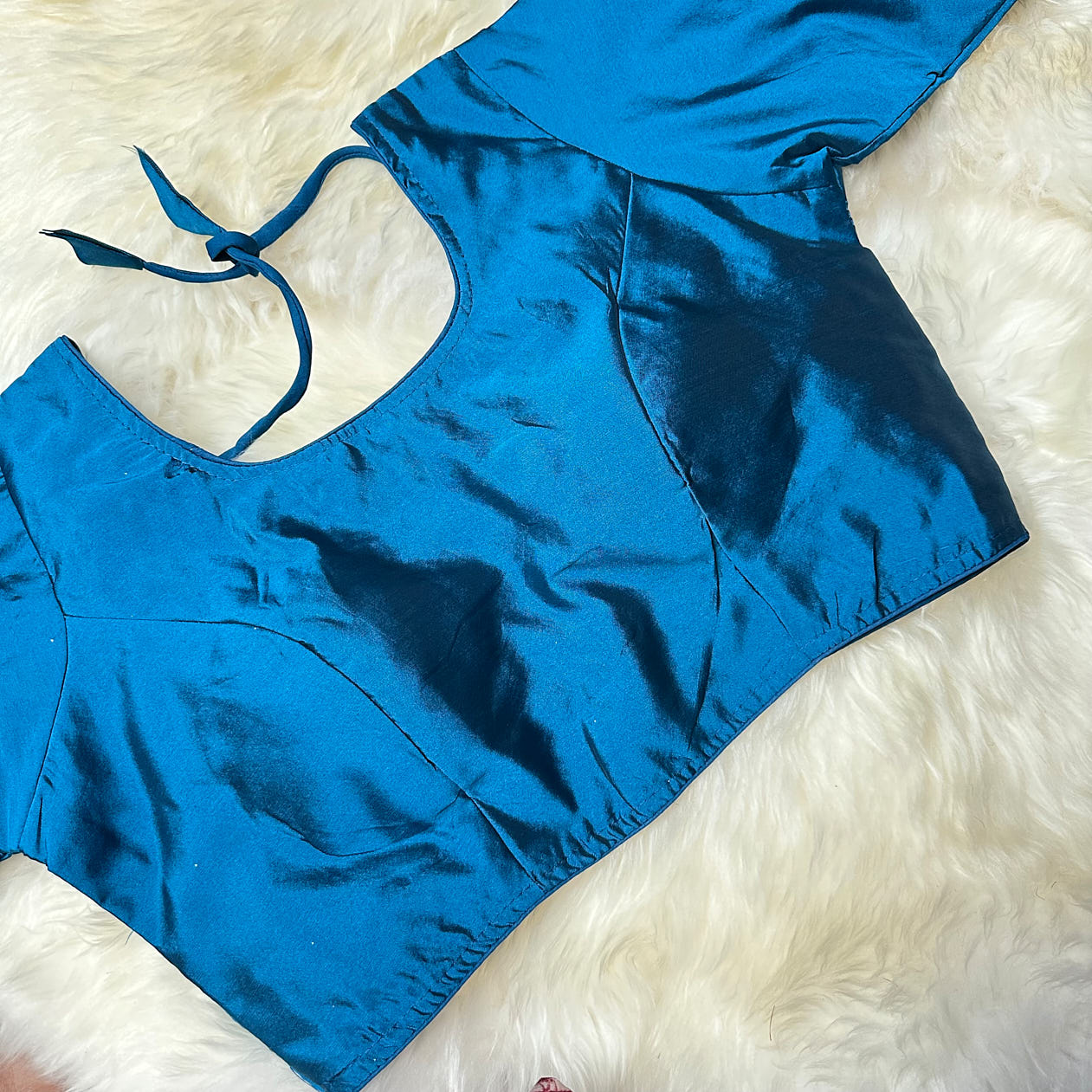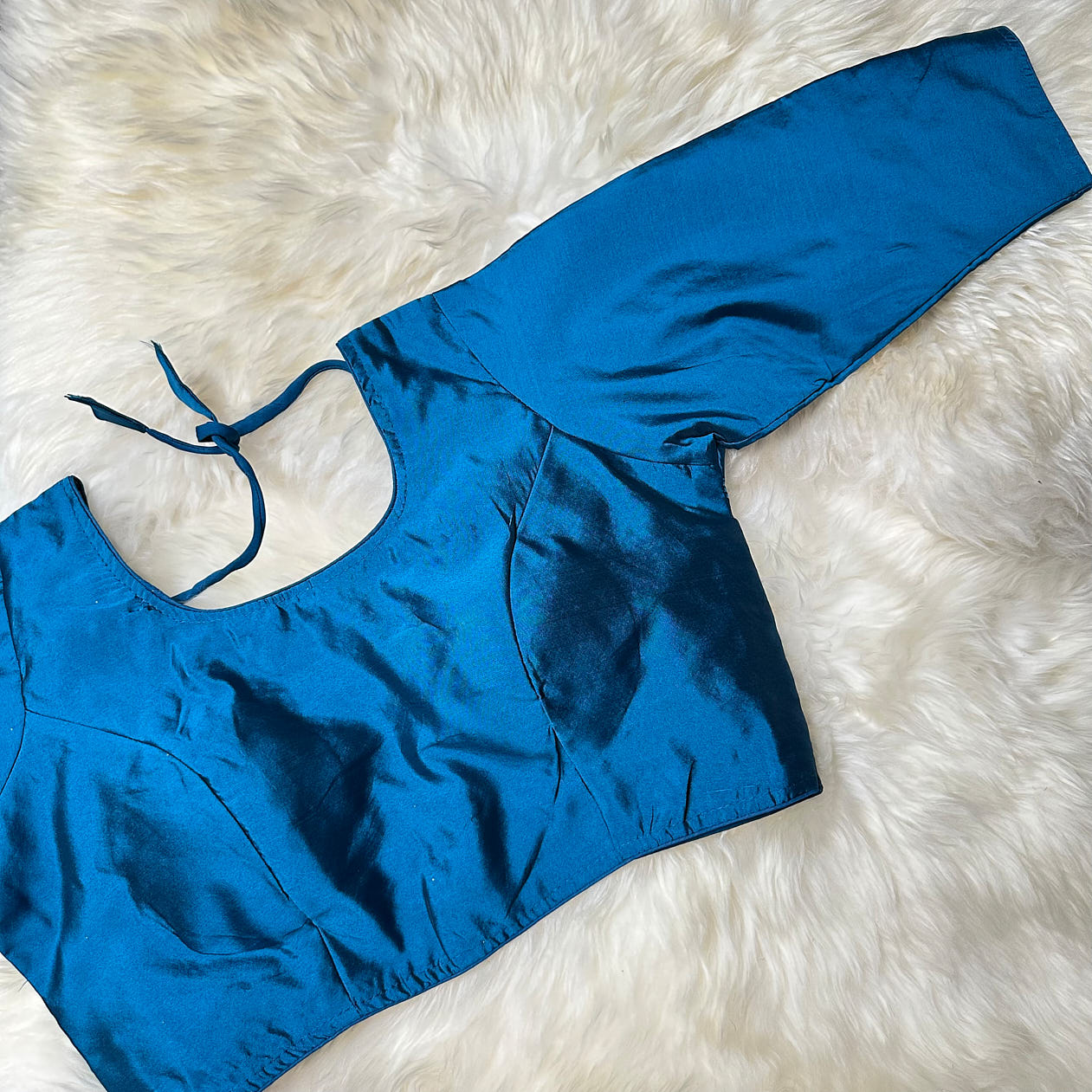 Elegant Teal Blue Silk Long-Sleeve Blouse – Perfect Fit (32 to 38) – Sophisticated & Stylish
