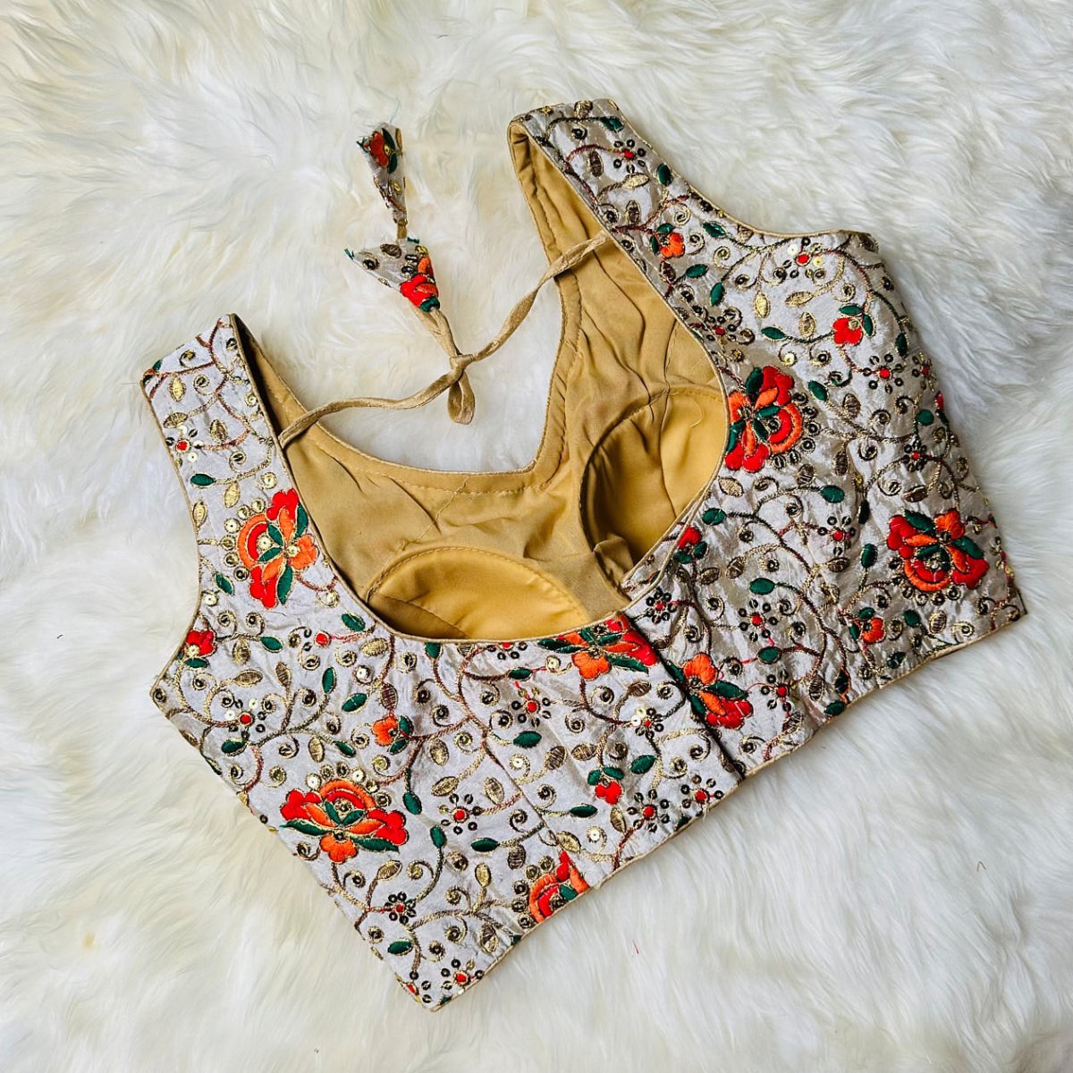 Elegant White Silk Floral Embroidered Designer Blouse – Perfect Fit (32 to 36)