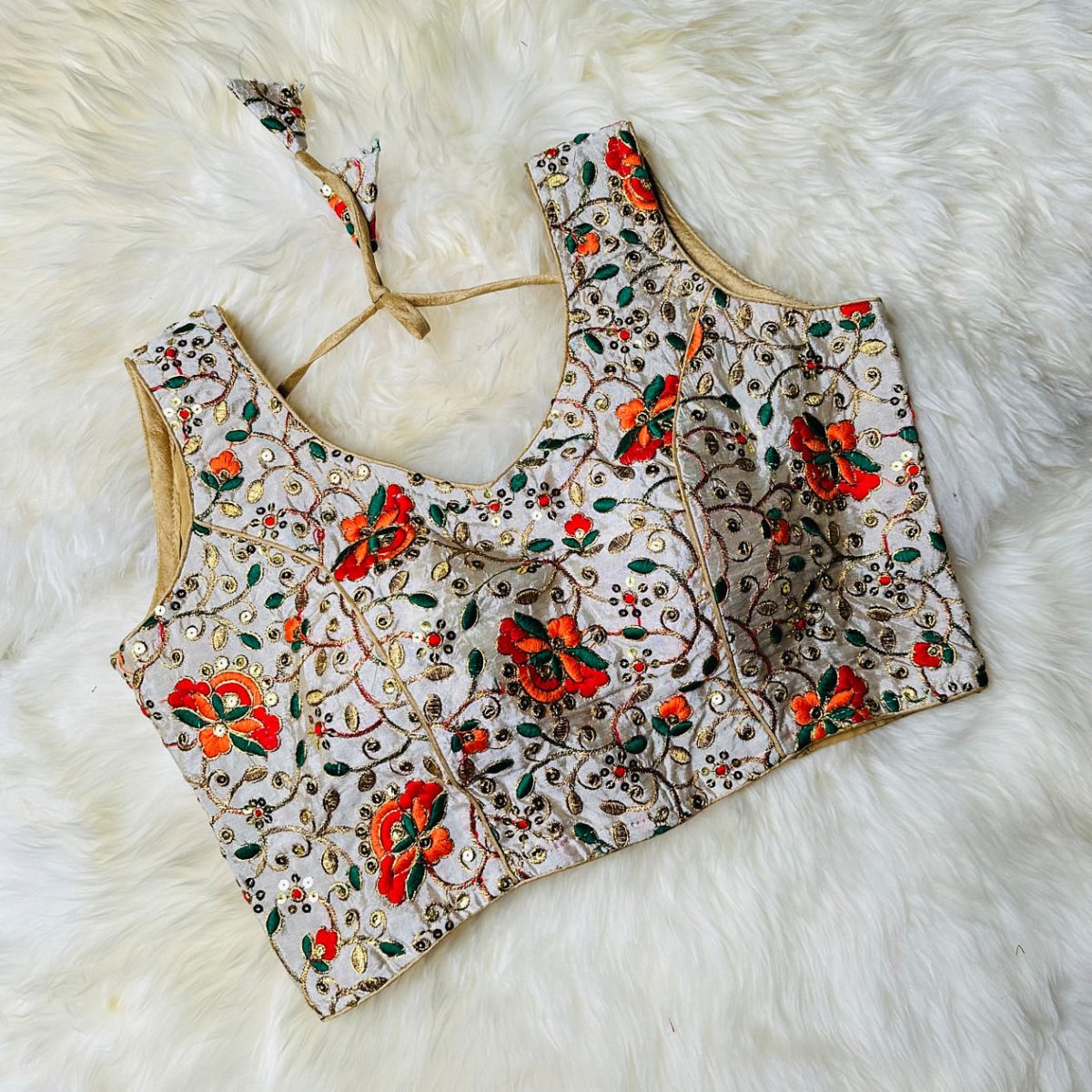 Elegant White Silk Floral Embroidered Designer Blouse – Perfect Fit (32 to 36) - swadeshsouq.com