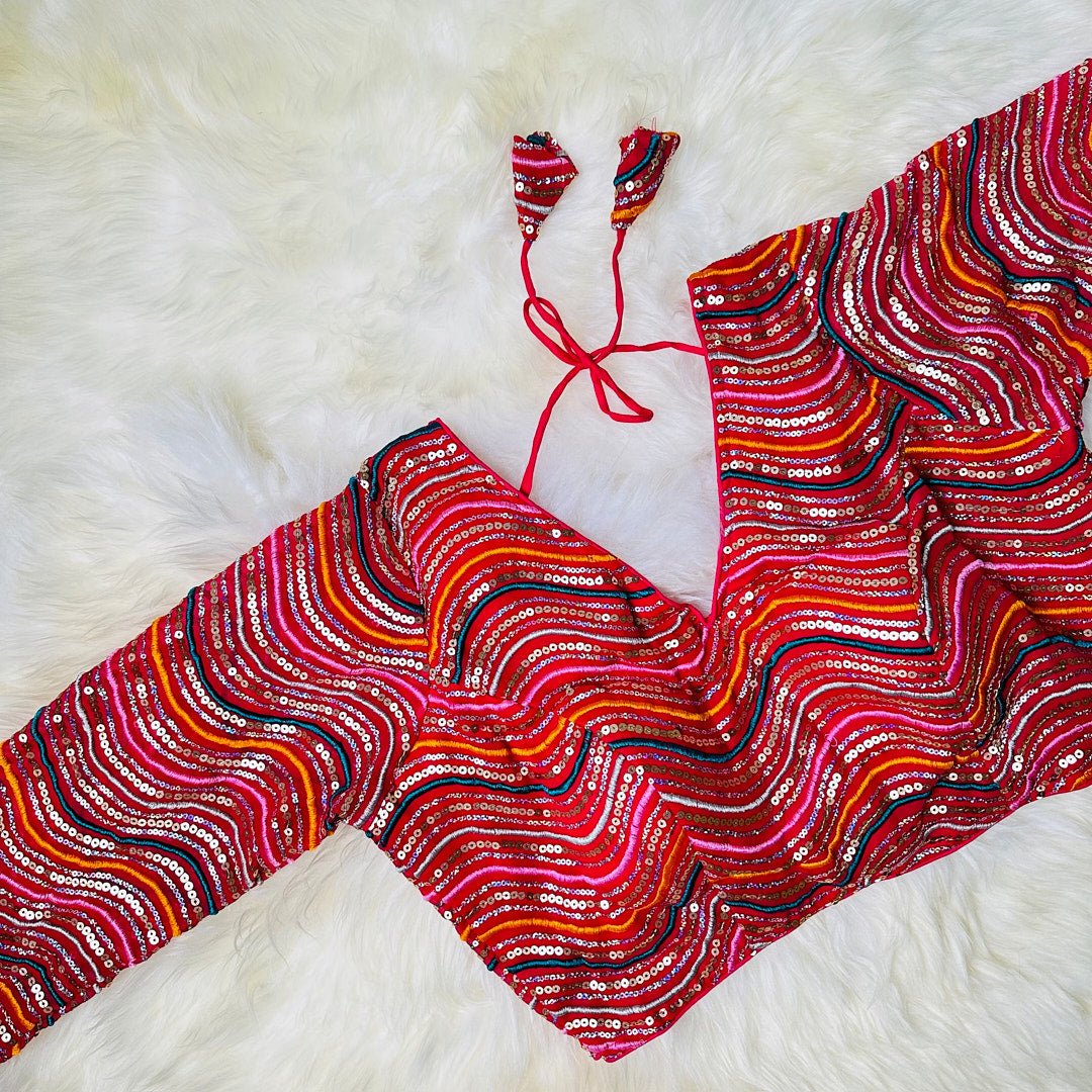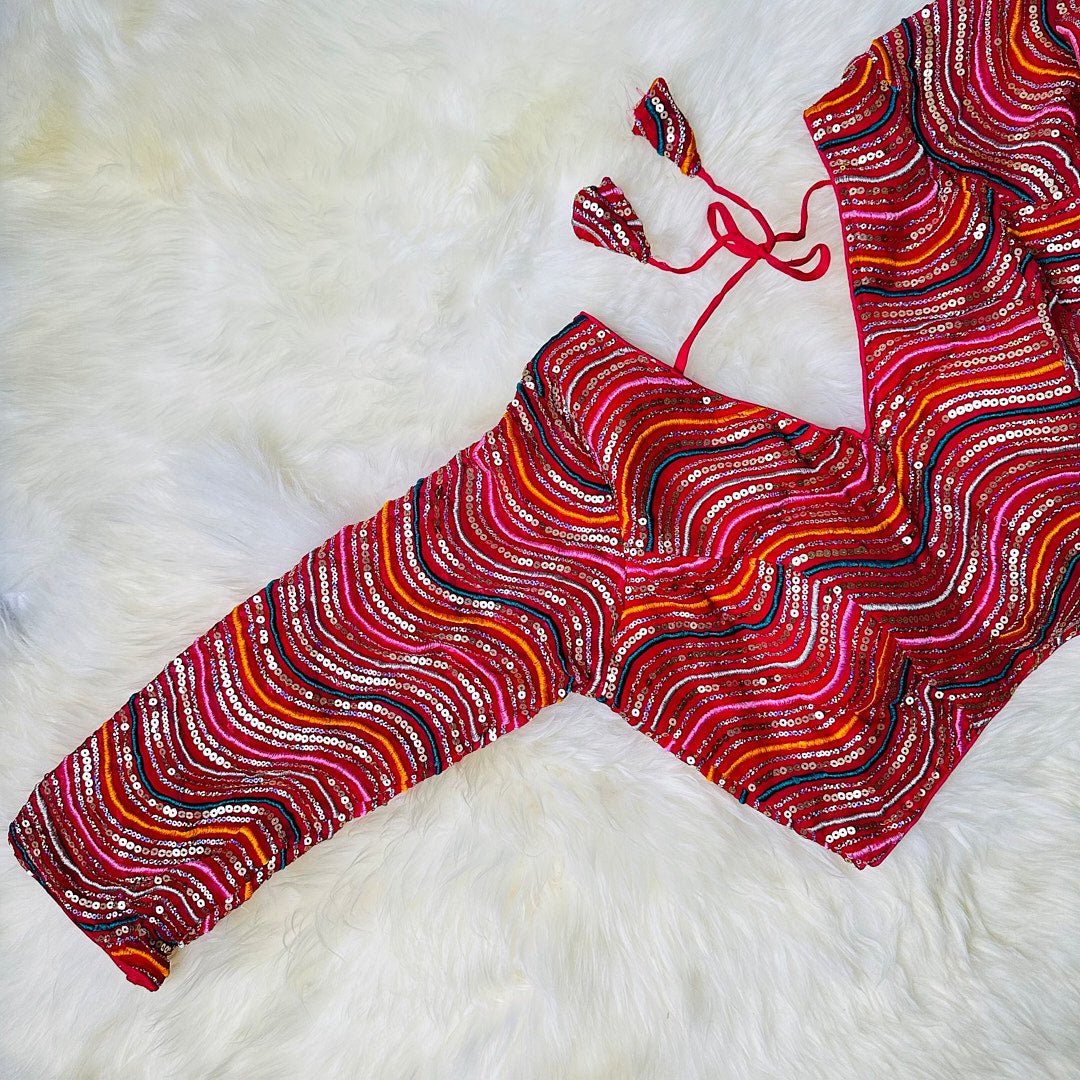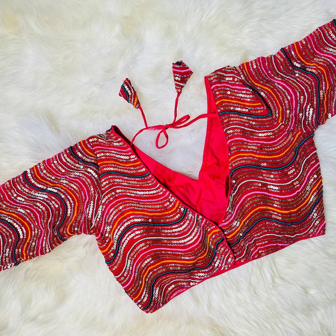 "Enchanting Pink Georgette Blouse with Full Sequin Embroidery - Perfect Party Wear. - swadeshsouq.com