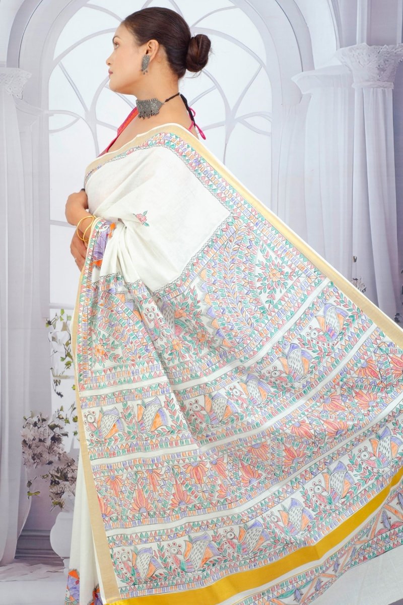 Eternal Grace – Madhubani Hand-Painted Kerala Cotton Saree