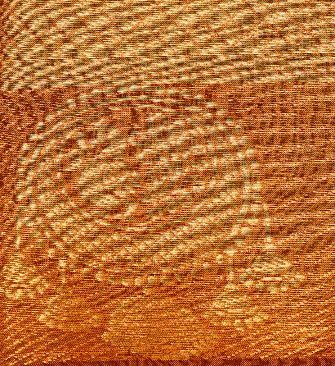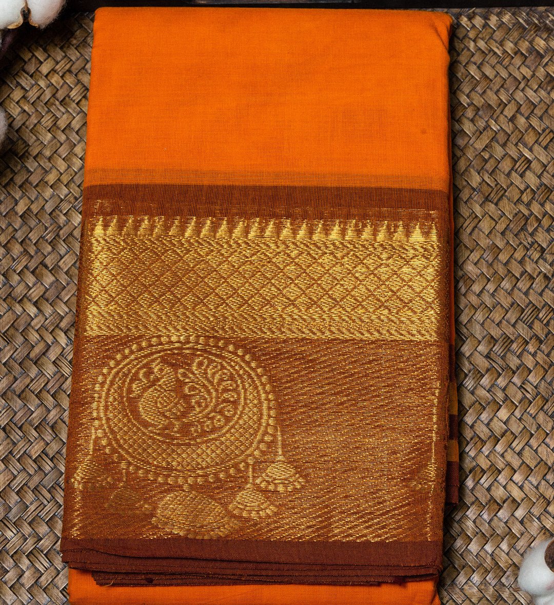 Get ethnic charm with Dark Orange/Brown Chettinad Cotton Saree w/ Jewel Design Embellishments from swadeshsouq.com.