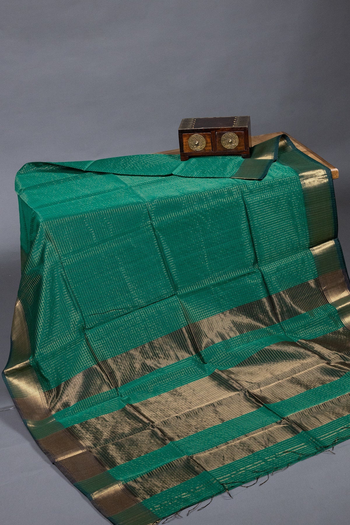 Green Zari-Checked Maheshwari Silkcotton Saree - swadeshsouq.com