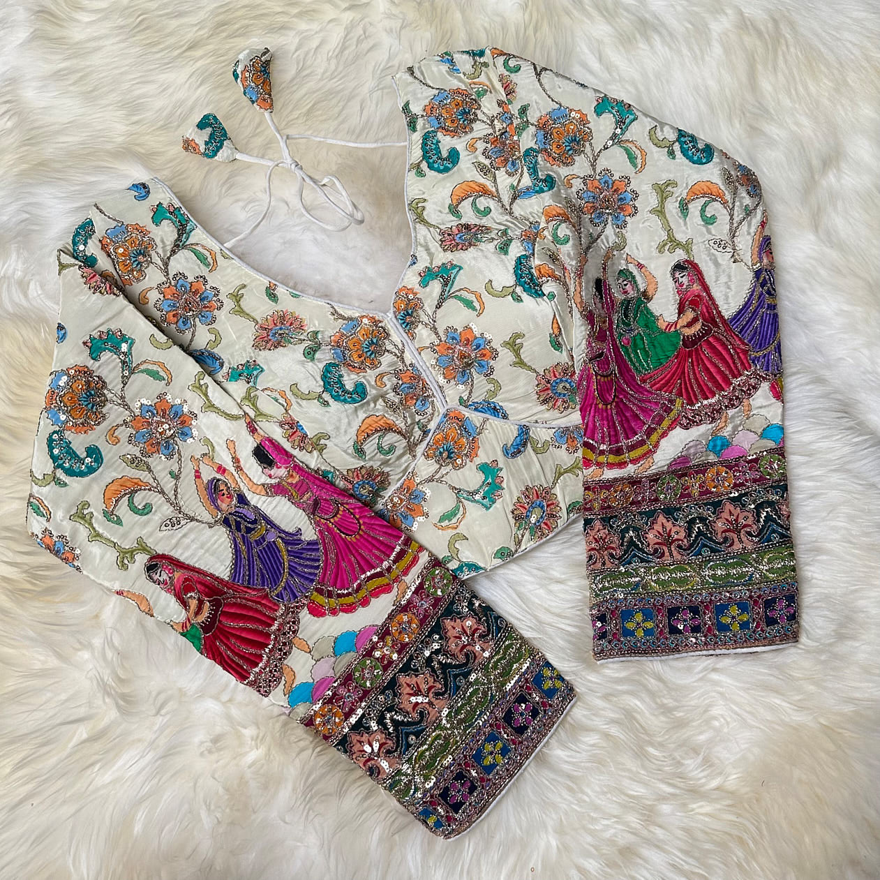 "Slight variations in colour, embroidery, or sequins placement may occur due to photography and lighting, enhancing the uniqueness of each handcrafted blouse."