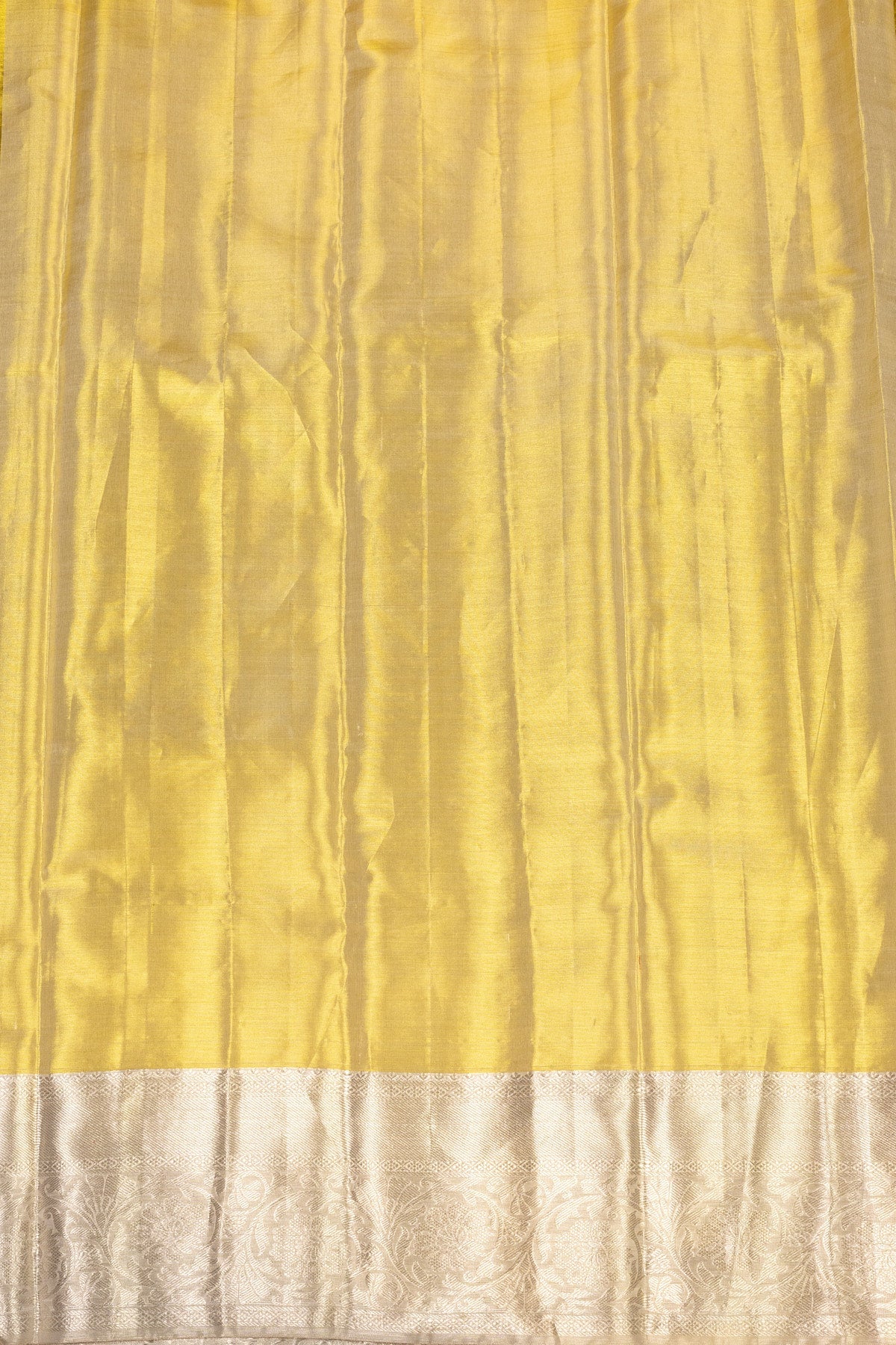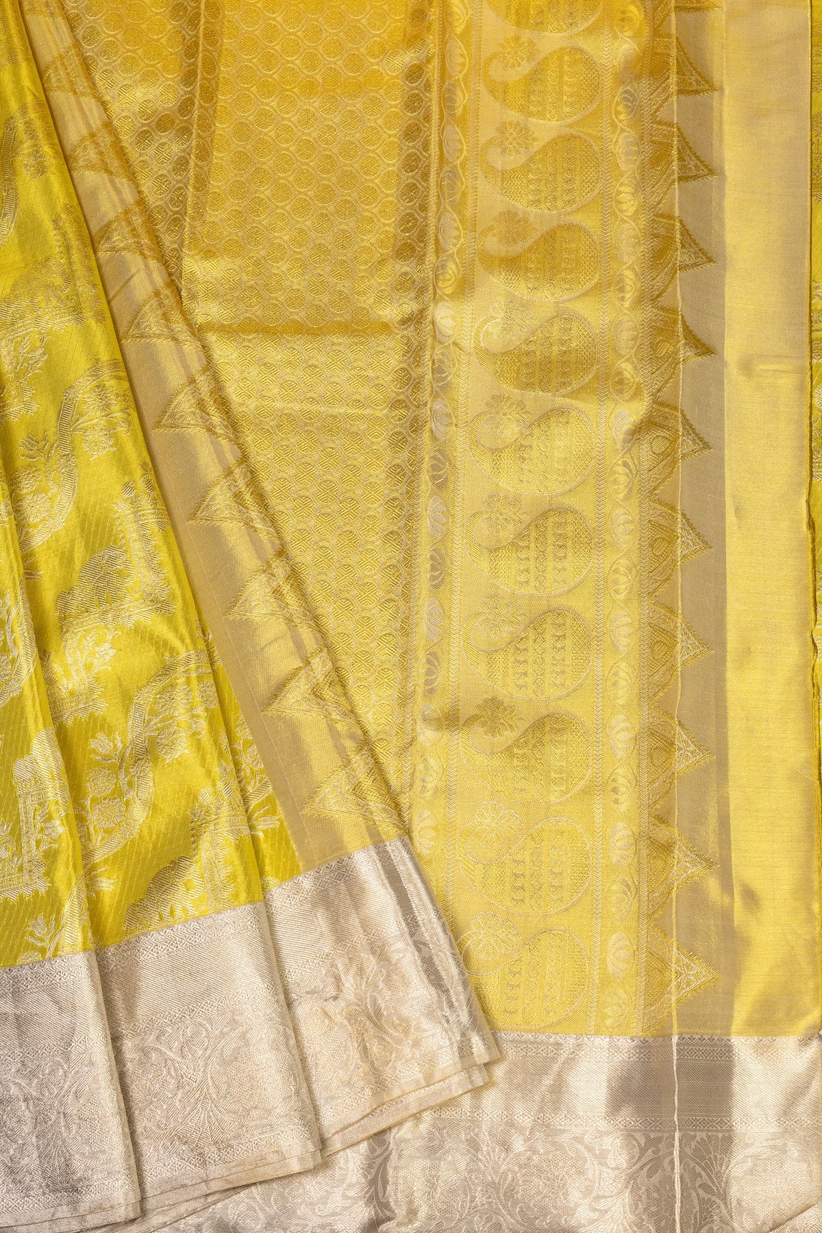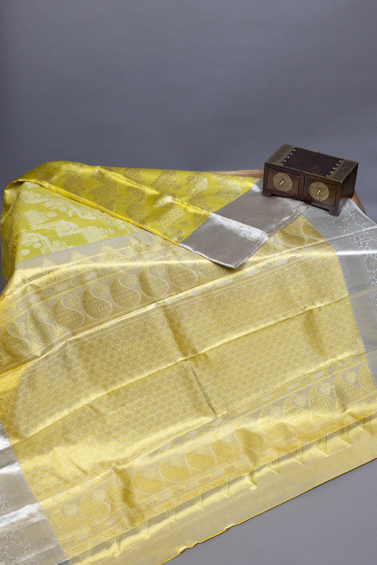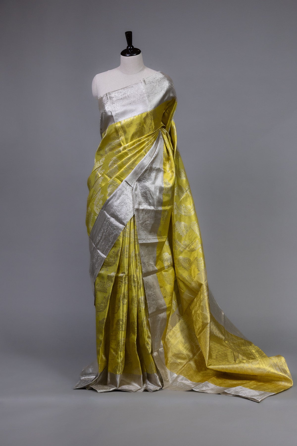 Lime Green Kanjeevaram Silk Saree with Handwoven Silver Zari