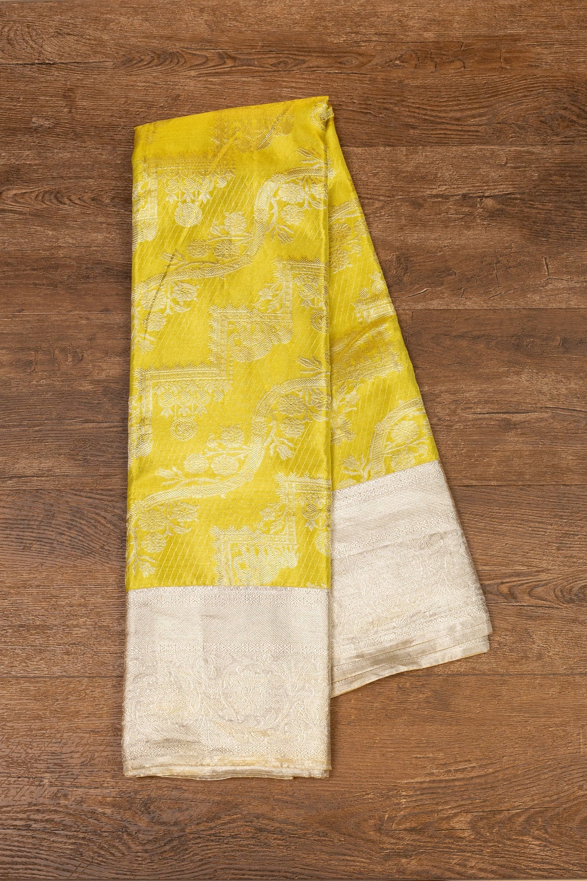 Lime Green Kanjeevaram Silk Saree with Handwoven Silver Zari - swadeshsouq.com