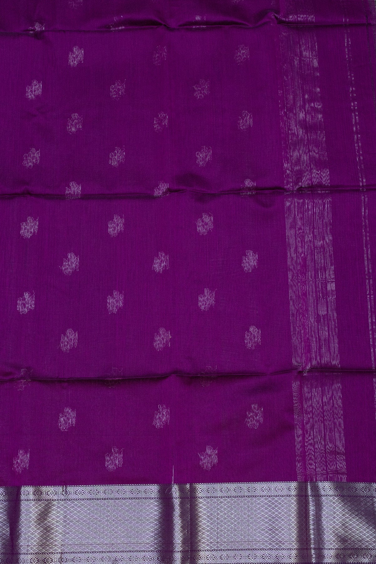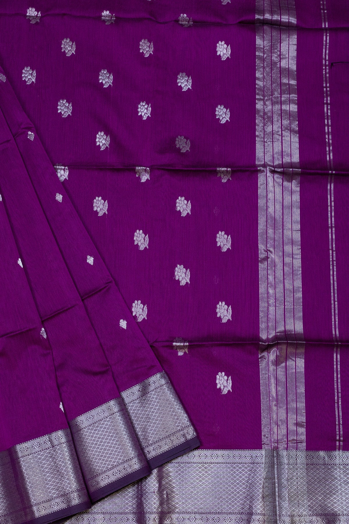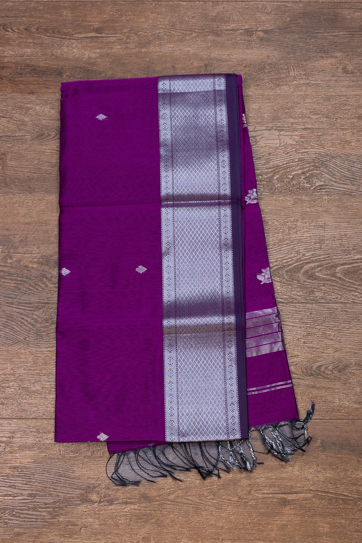 Purple Maheshwari Silk-Cotton Saree with Silver Zari & Rose Butti