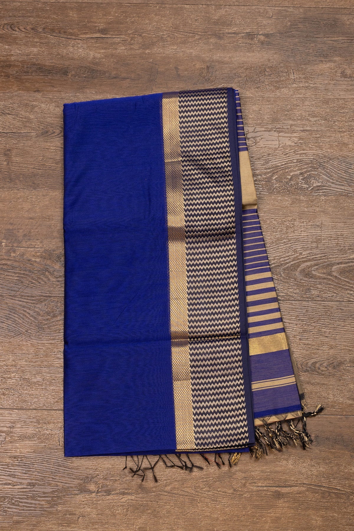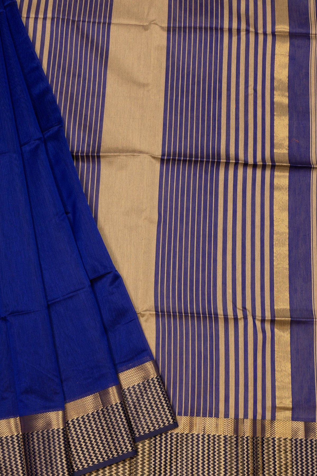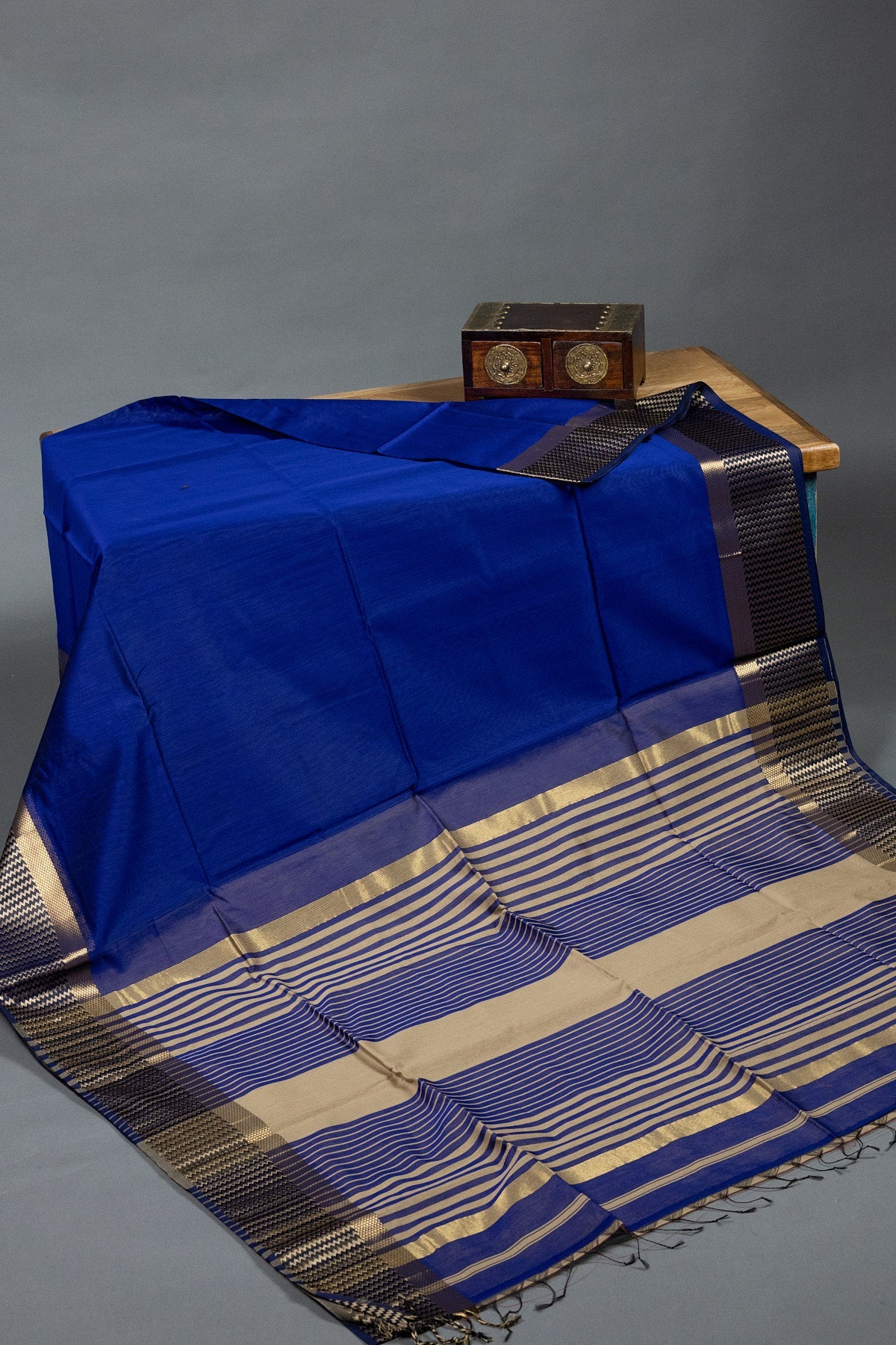 Dive into elegance with our royal blue Maheshwari silk-cotton saree. The deep hue exudes regality, while the contrasting pallu adds a dash of contemporary charm. Expertly handwoven, it's a symphony of tradition and style, perfect for moments you wish to stand out.