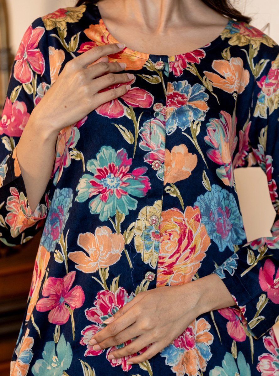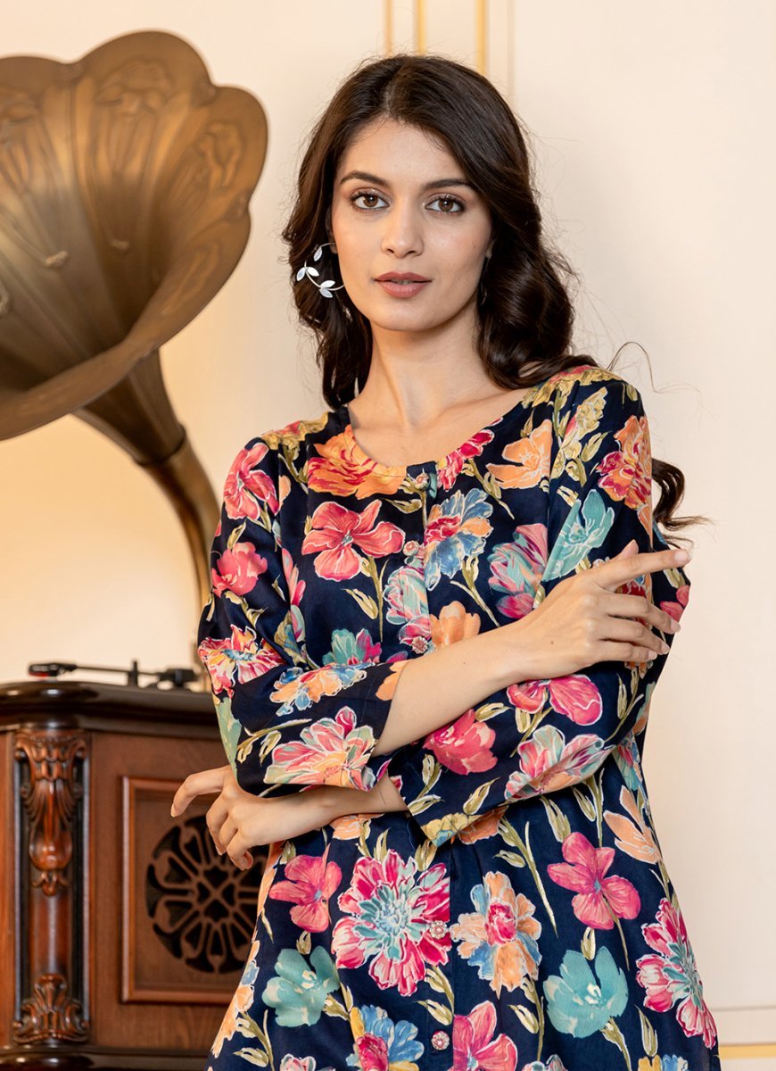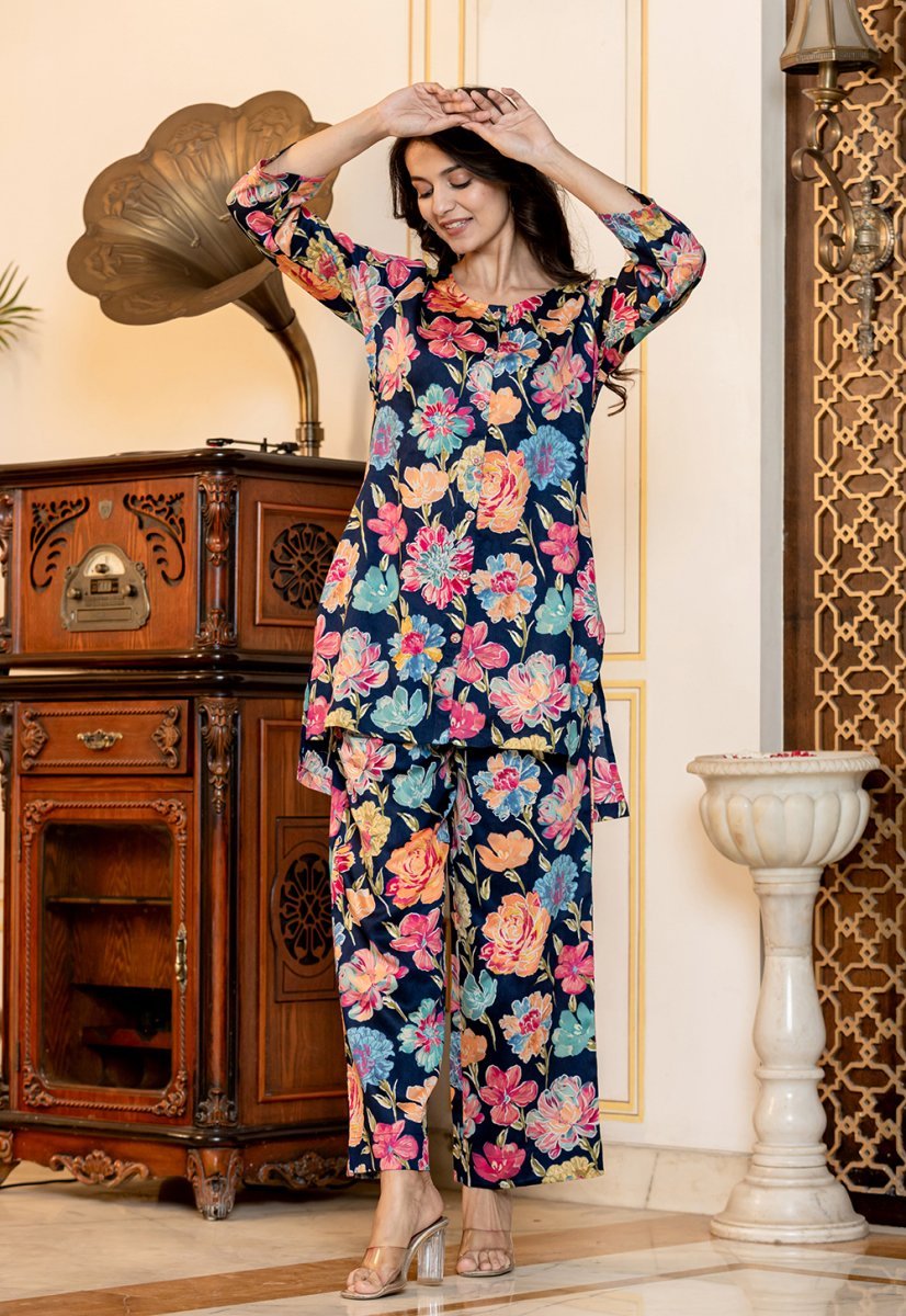 Serene Blue Floral Printed Butter Cotton Co - Ord Set - swadeshsouq.com