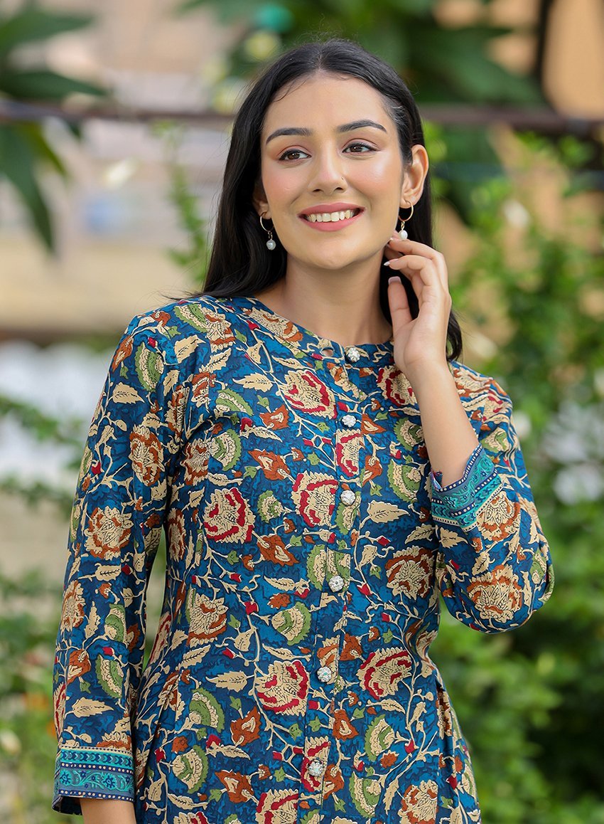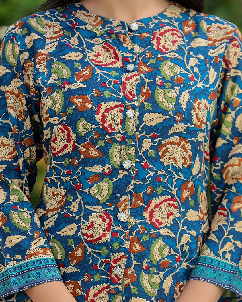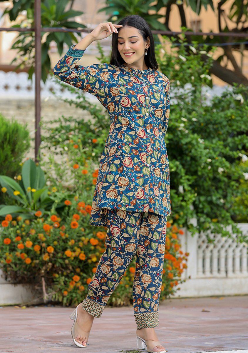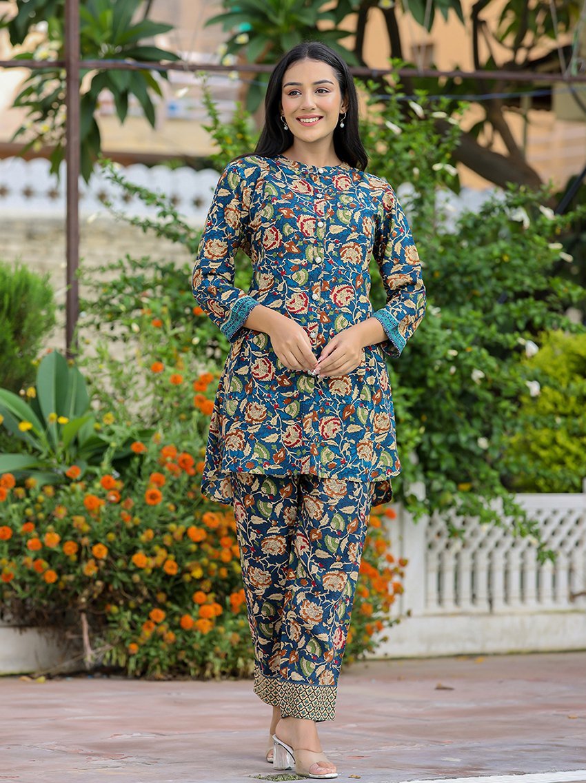 Step into effortless elegance with our Serene Blue Kalamkari Printed Rayon Co-Ord Set, a stunning fusion of artistry and comfort. This captivating ensemble features exquisite hand-printed Kalamkari motifs that reflect a rich cultural heritage, all beautifully rendered in calming shades of blue. Crafted from soft, breathable rayon, the fabric drapes gracefully, ensuring a smooth, luxurious feel against your skin. Perfect for both casual outings and festive gatherings, this co-ord set includes a stylish top and coordinating bottoms that are designed to make a statement. Elevate your wardrobe with this versatile piece, and embrace a look that effortlessly combines tradition with modern flair. Wear it with confidence and let your unique style shine!