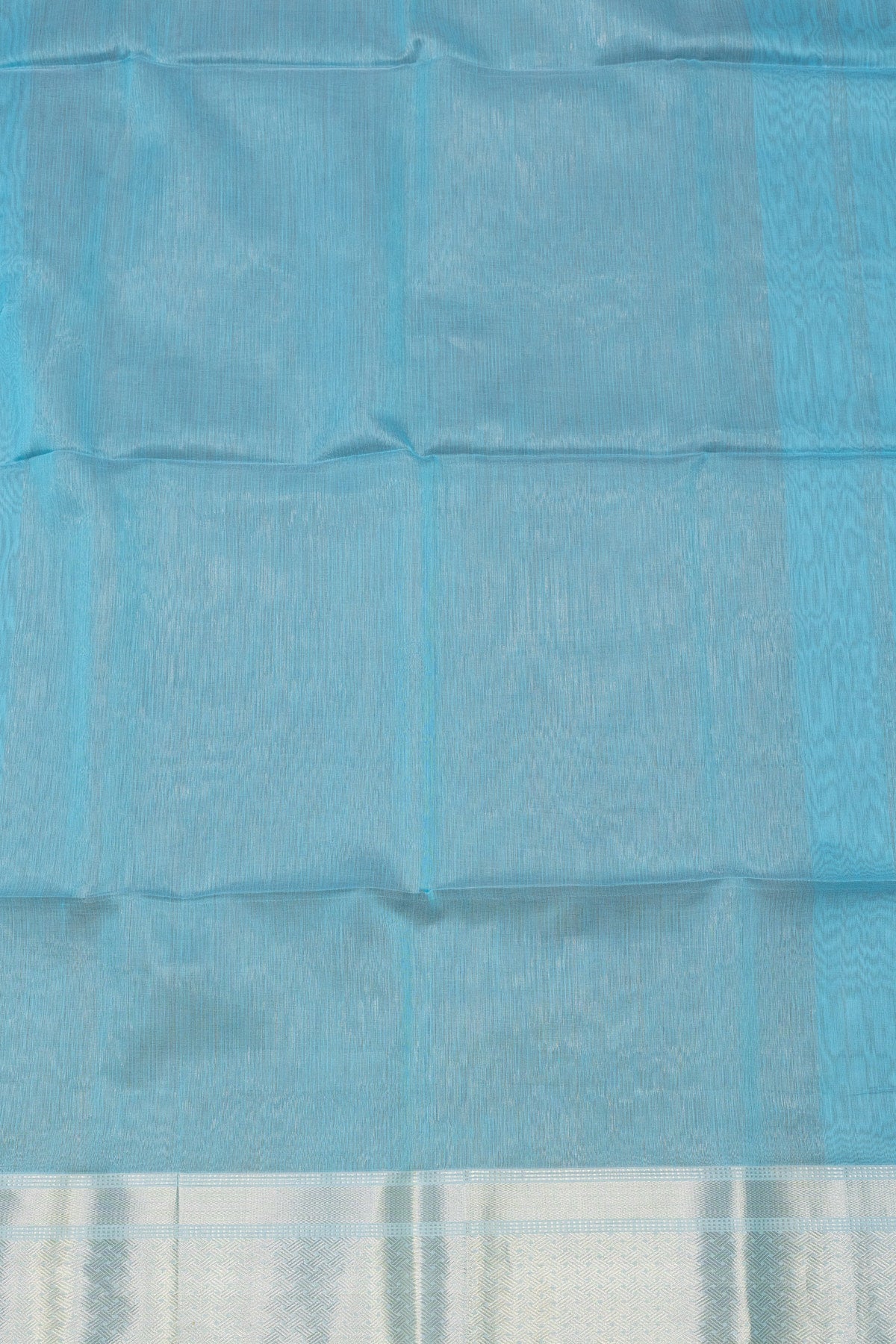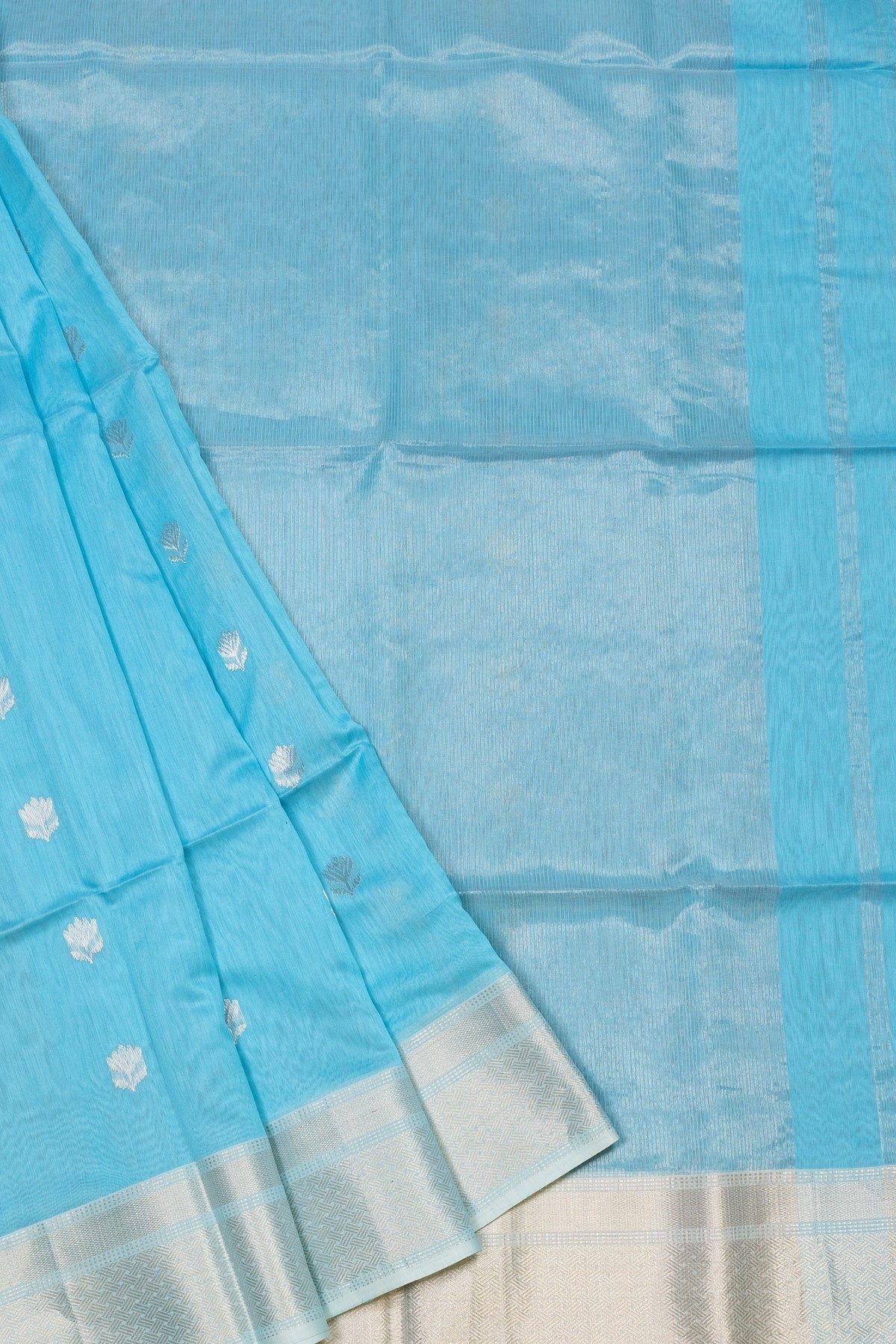 Sky Blue Maheshwari Silk-Cotton Saree with Silver Zari Lotus Buttis