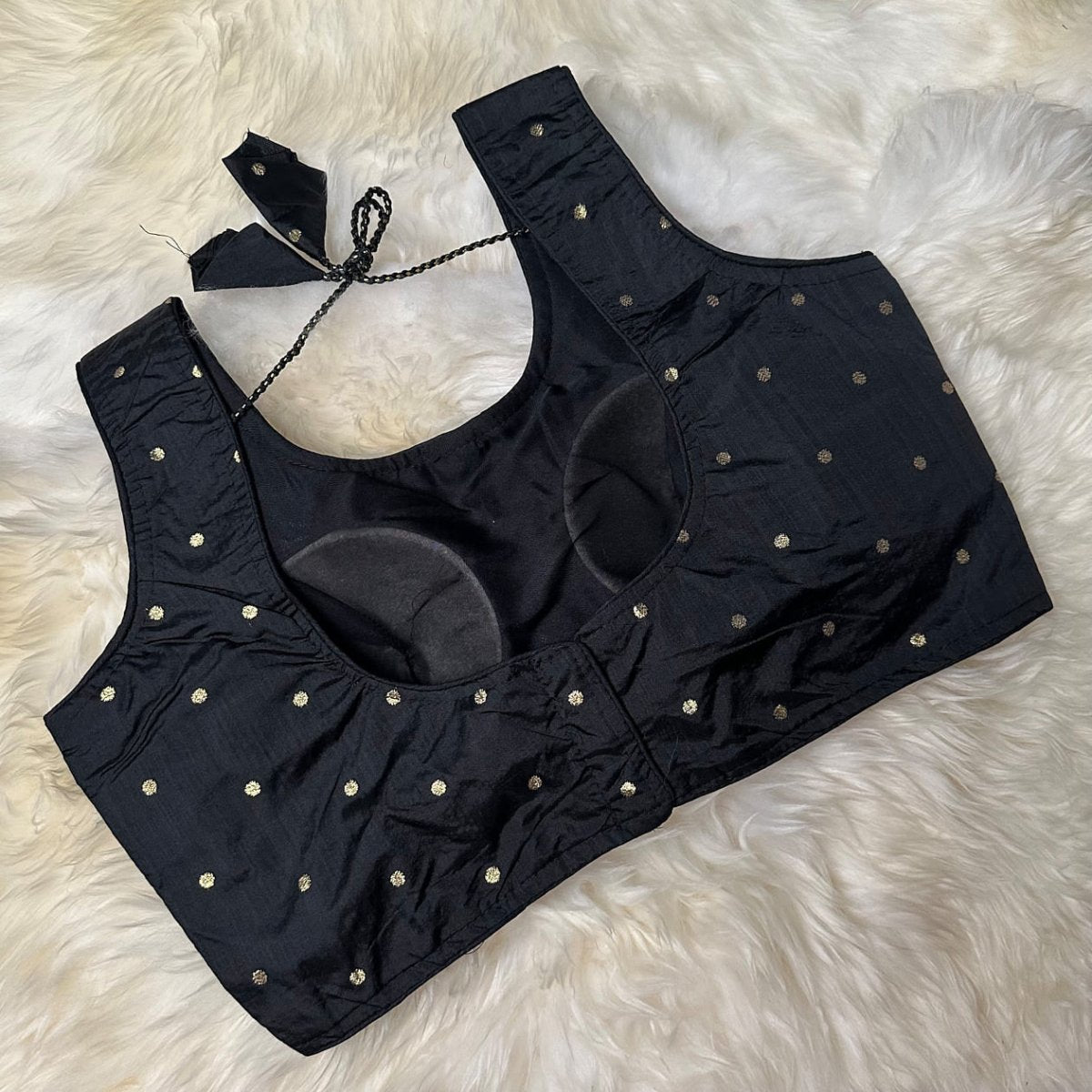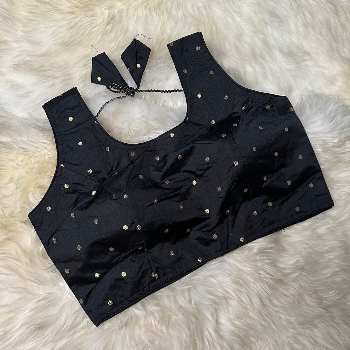 Soft Black Silk Blouse with Exquisite Golden Zari Butta – Elegant & Timeless - swadeshsouq.com