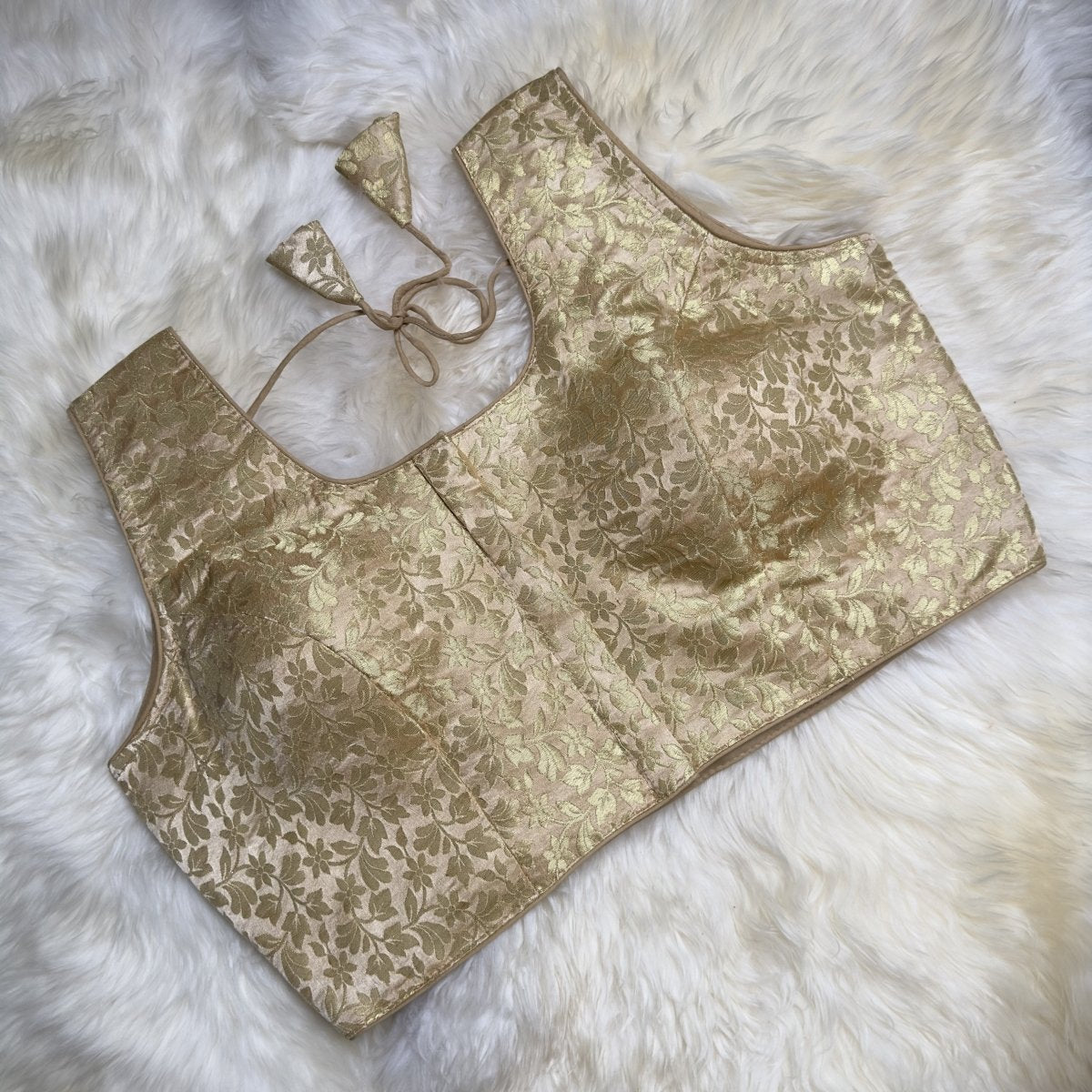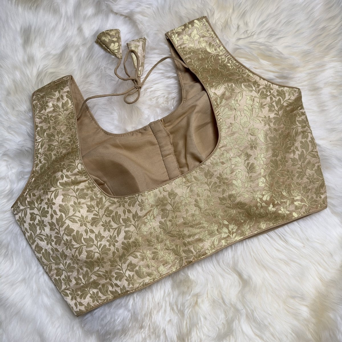 Timeless Gold Brocade Silk Blouse - Subtle Elegance - swadeshsouq.com