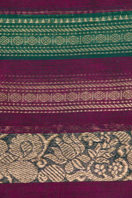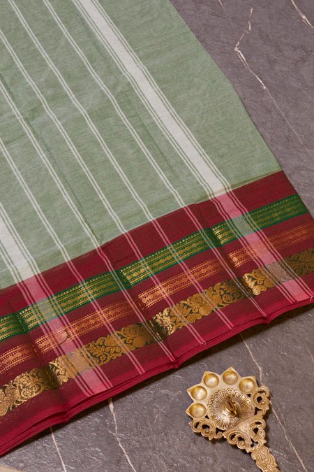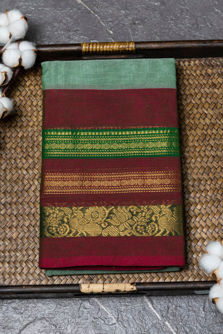 Turquoise Green Pure Cotton Saree with Elegant Maroon Borders - swadeshsouq.com