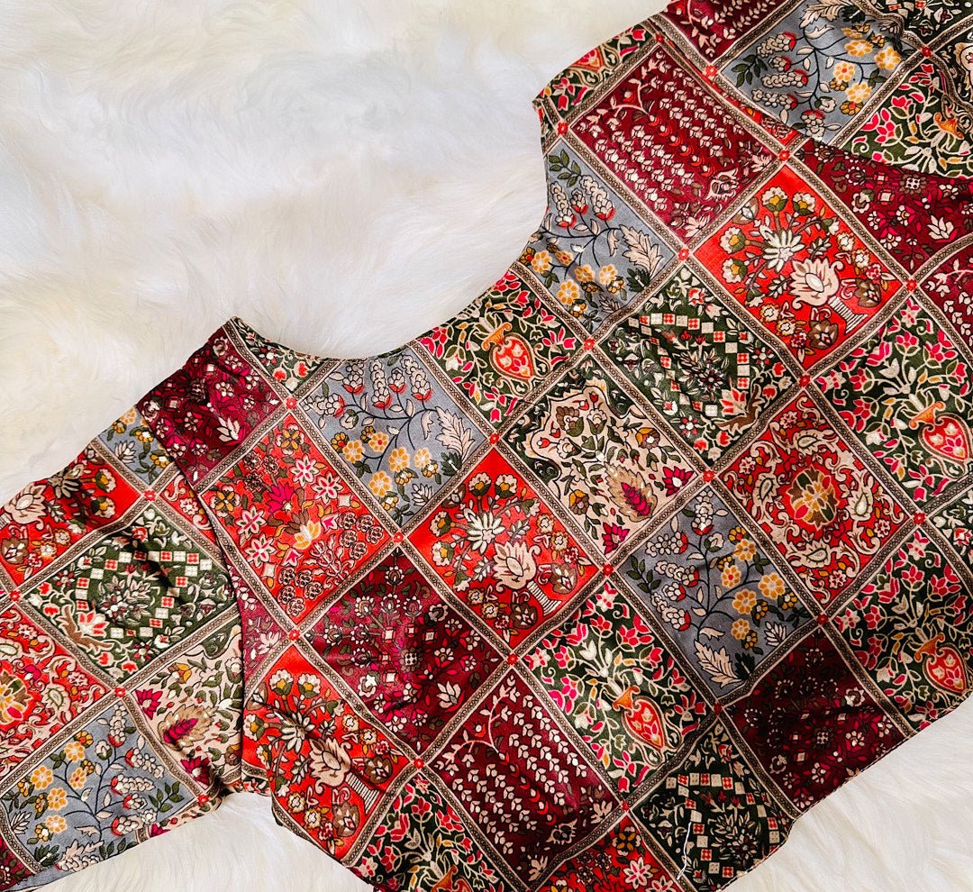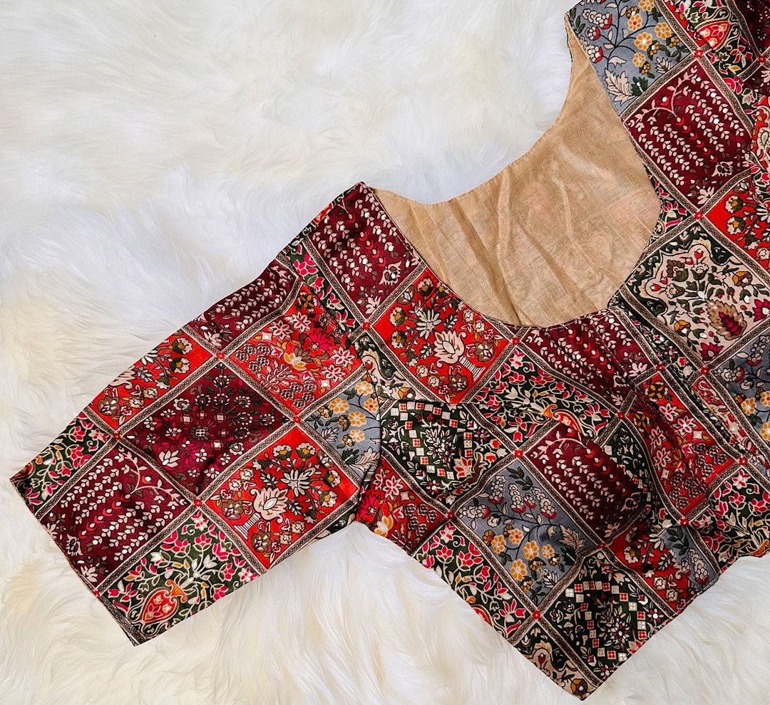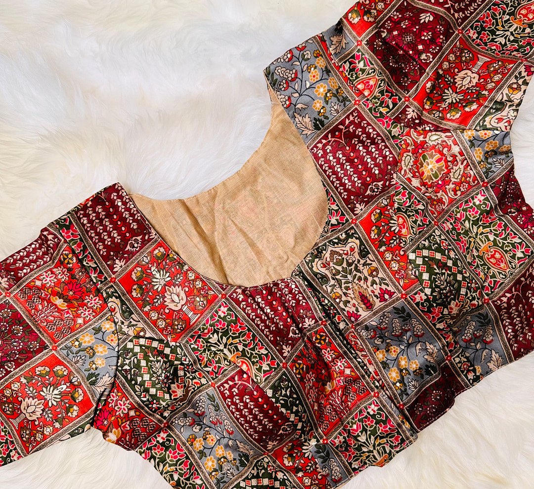 Unleash Your Regal Charm with the Maroon Full Patola High Neck Blouse