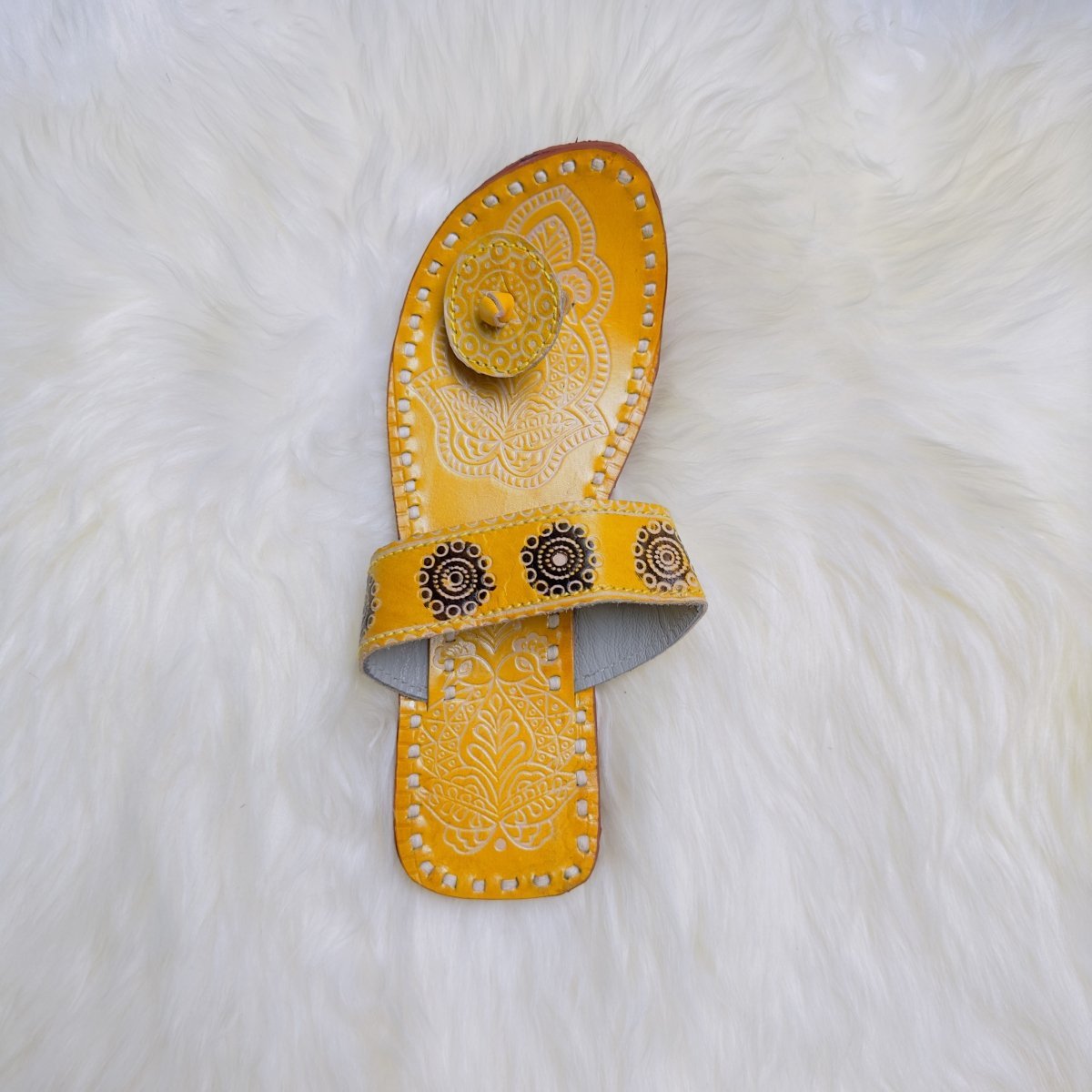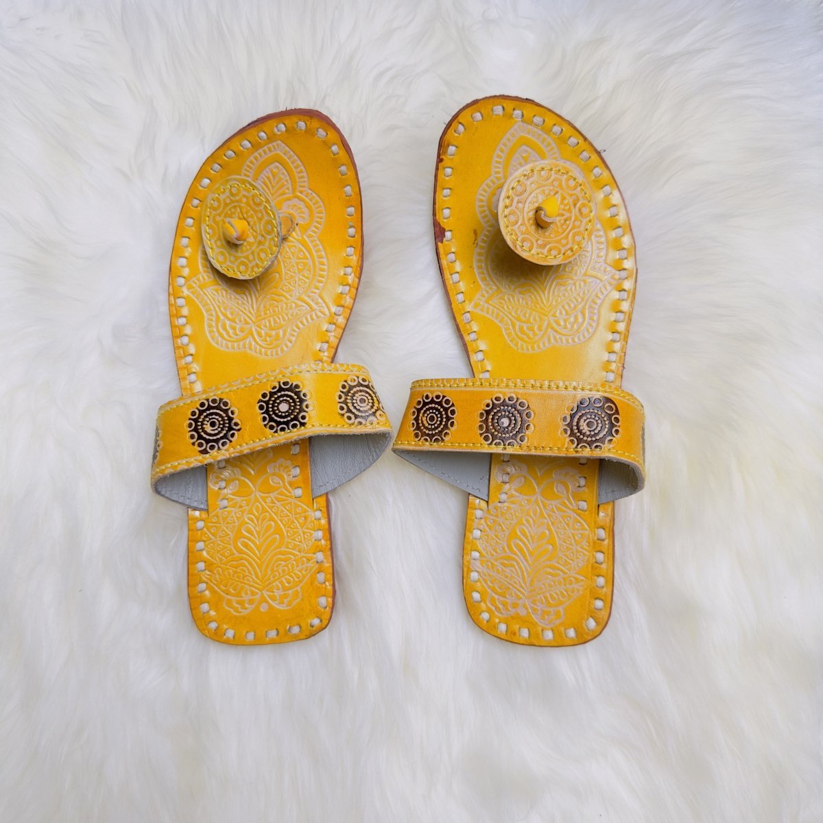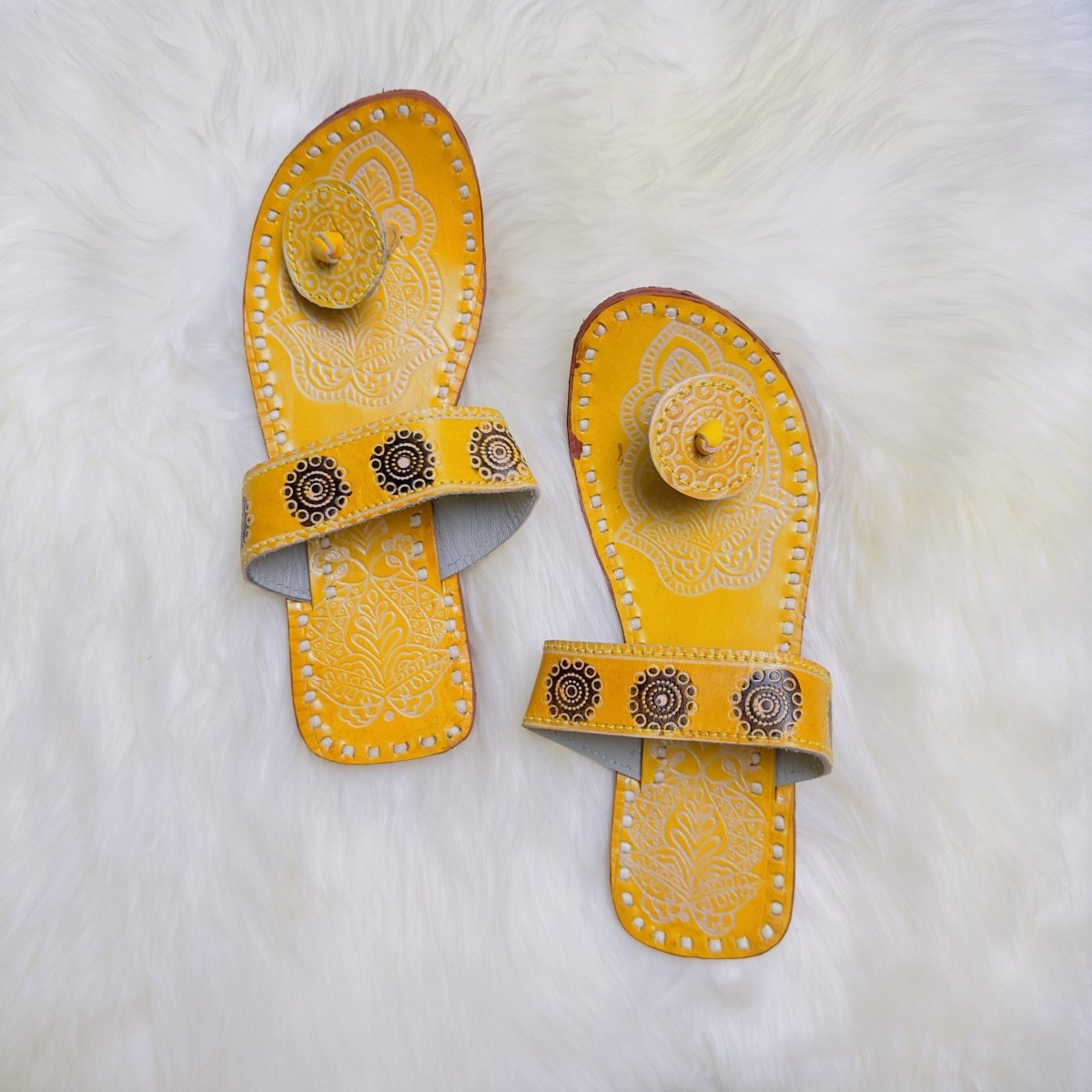 Vibrant Yellow Handcrafted Kolhapuri Sandals – Traditional Elegance Reimagined - swadeshsouq.com