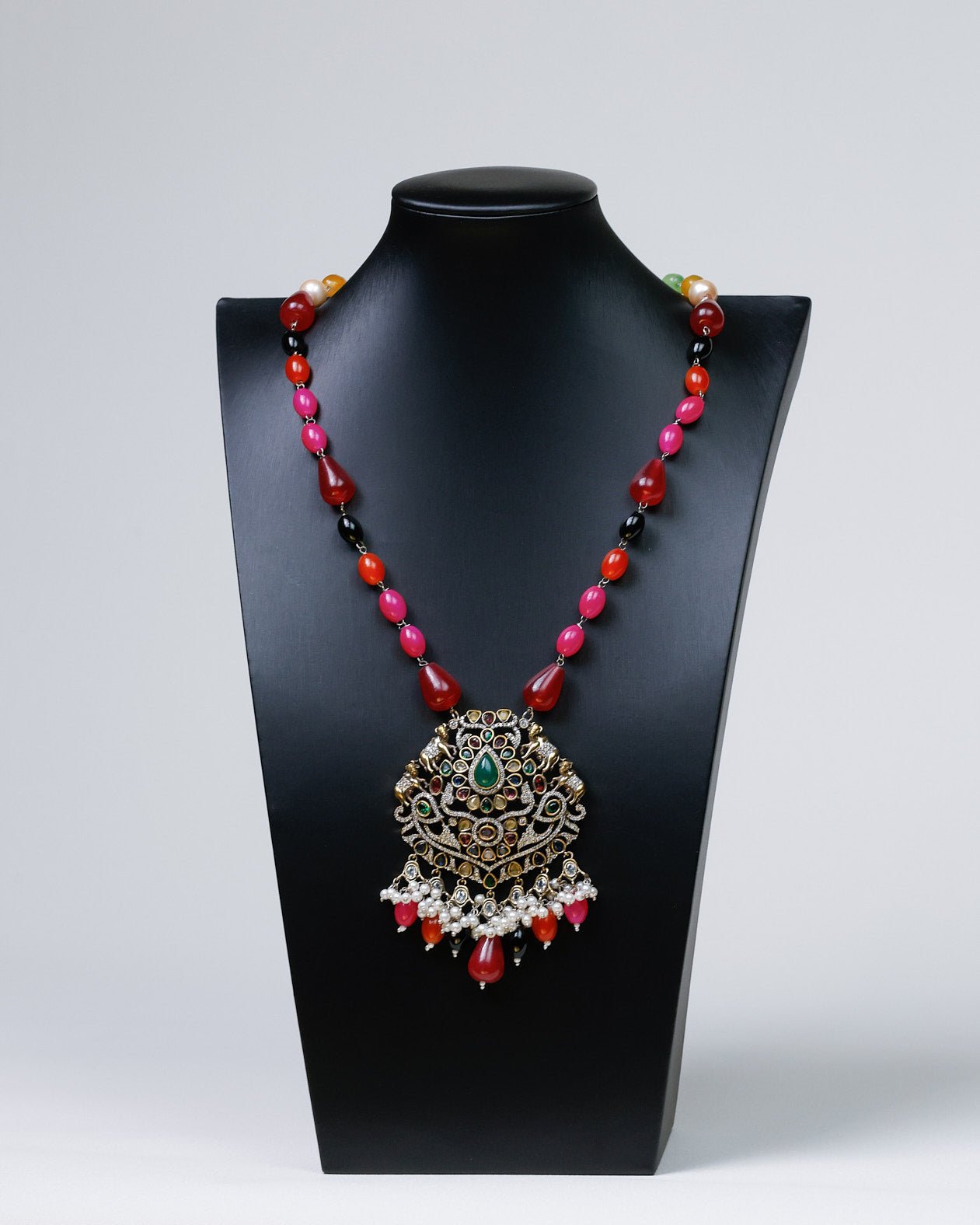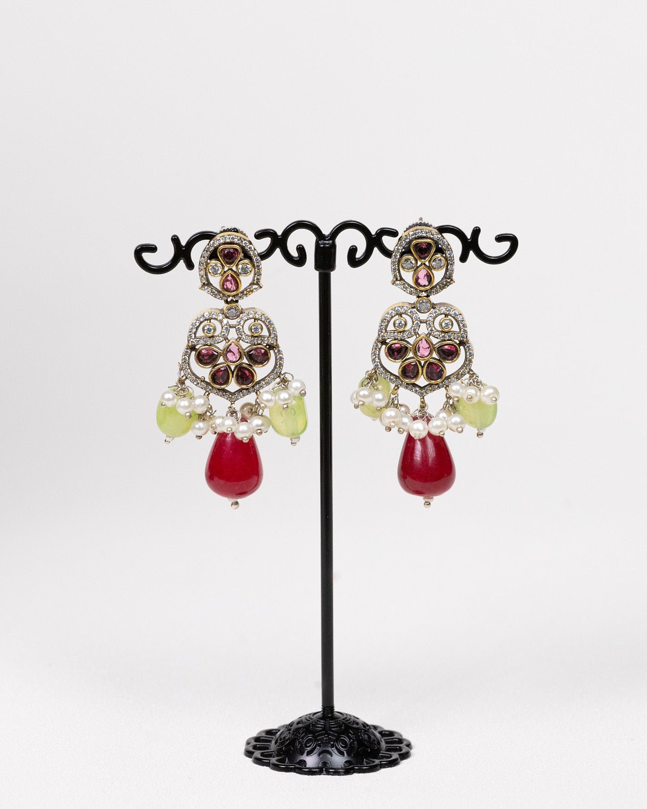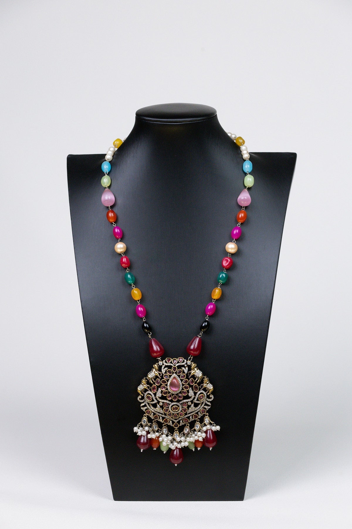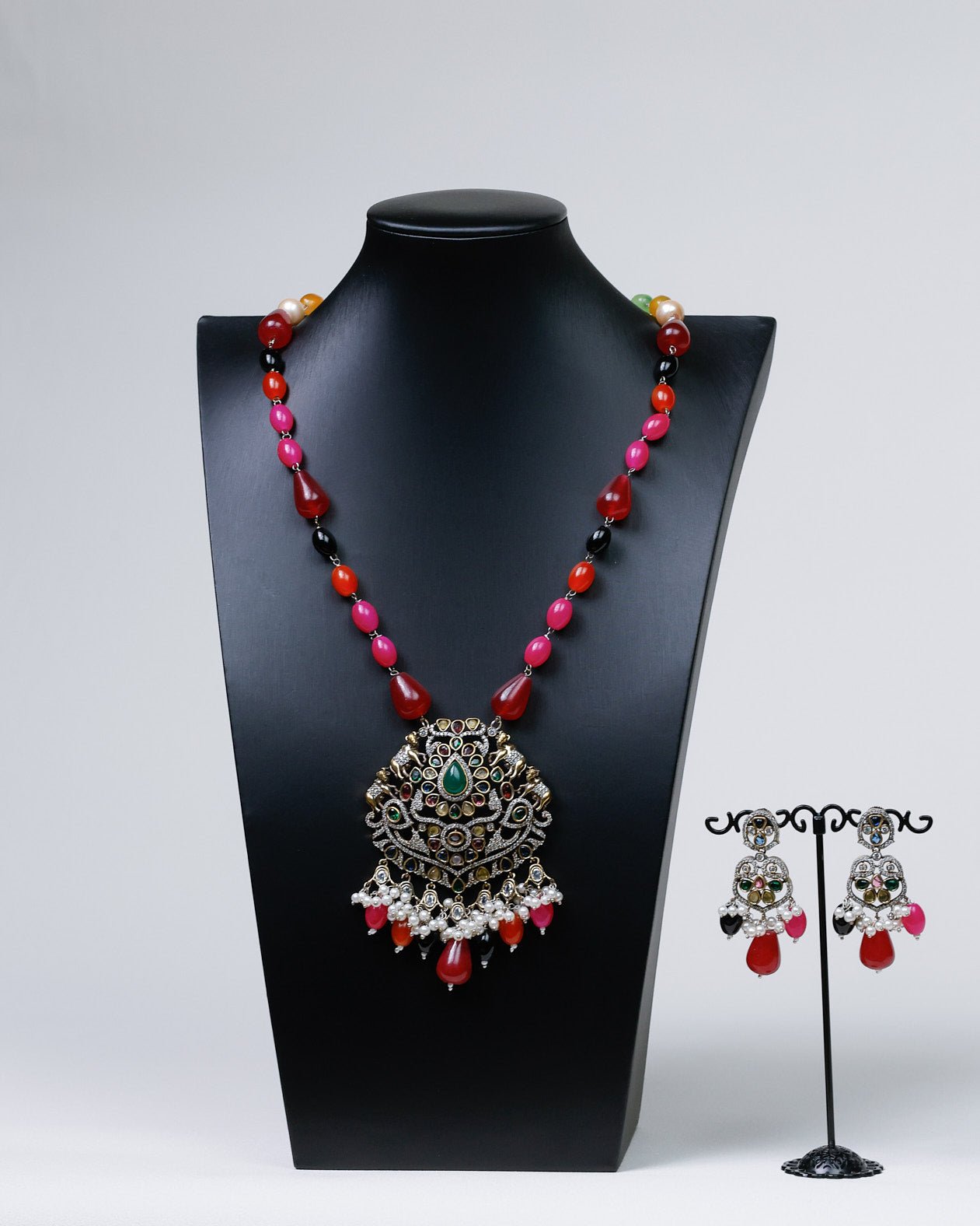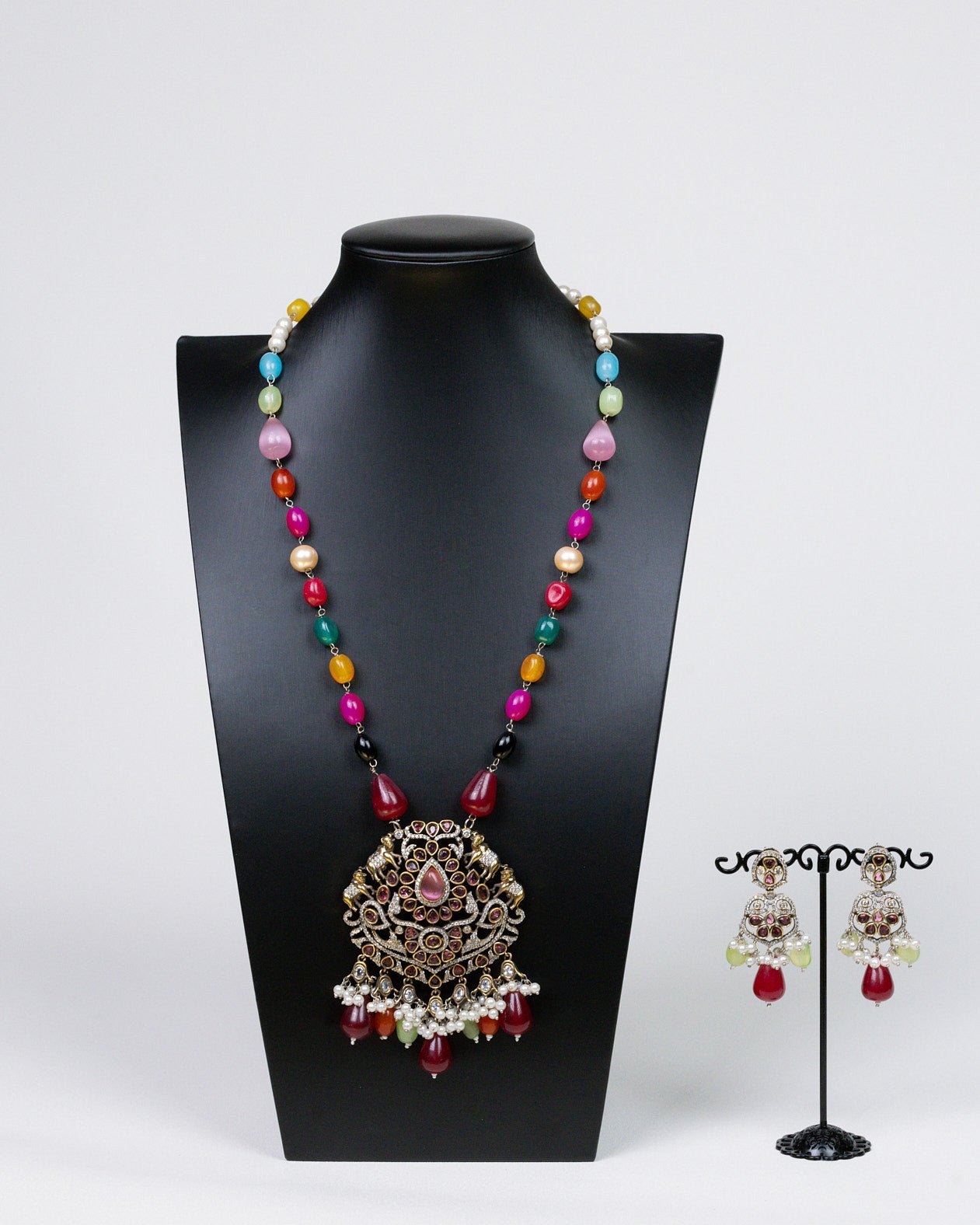 Embark on a journey through time with our exquisite Victorian beads set. At its heart lies a meticulously handcrafted brass pendant, resplendent with sparkling CZs, capturing the very essence of Victorian elegance. Paired with matching earrings, this ensemble is more than just jewelry; it's a narrative of craftsmanship, sophistication, and timeless charm. An adornment designed to leave an indelible mark on every onlooker.