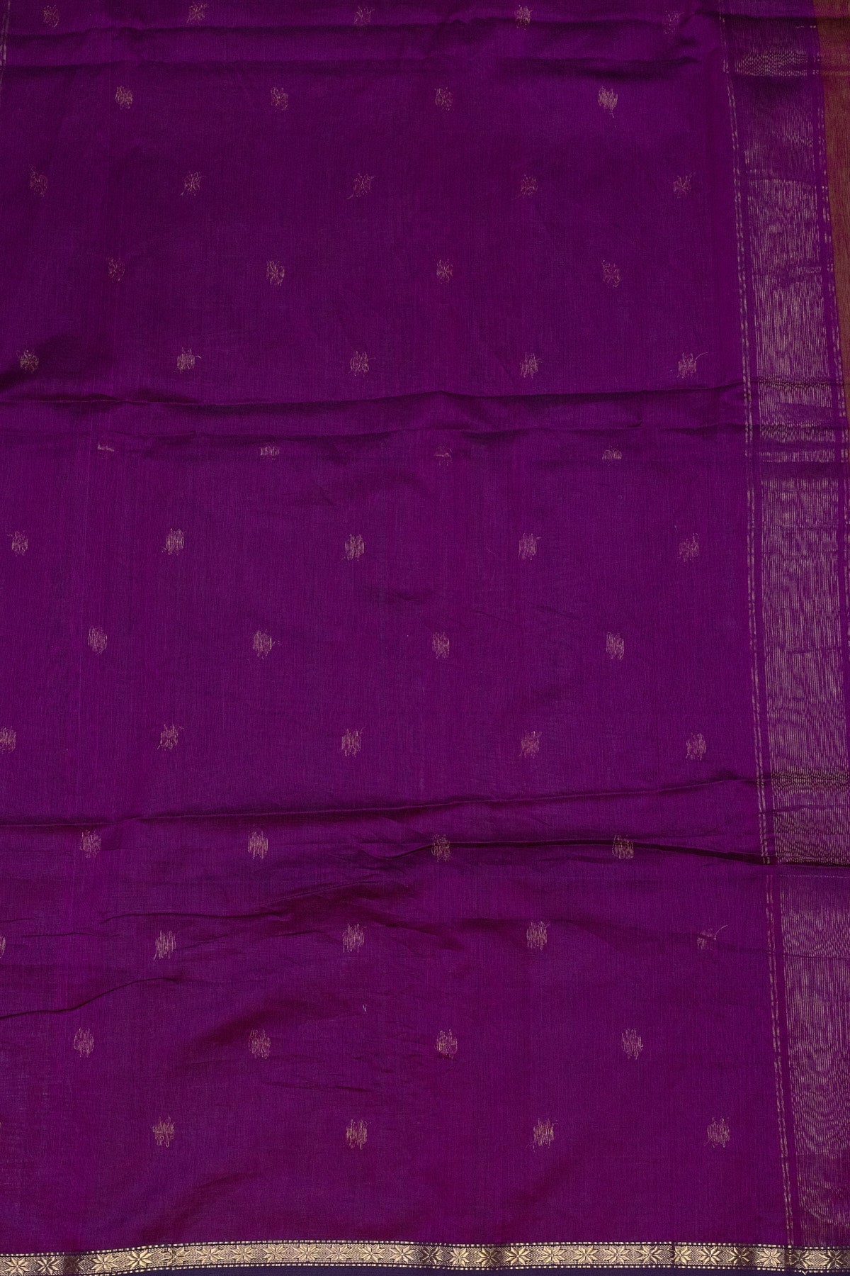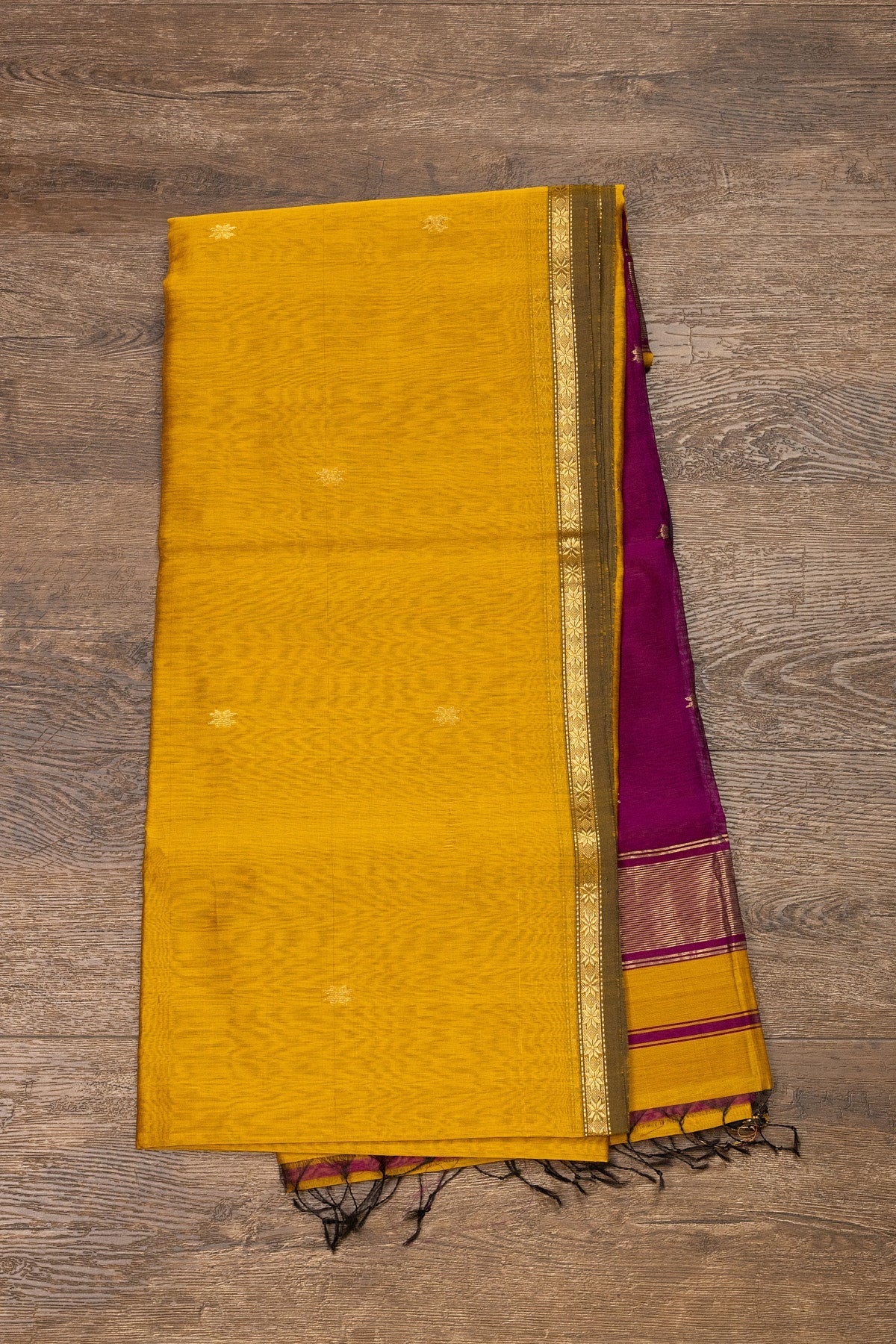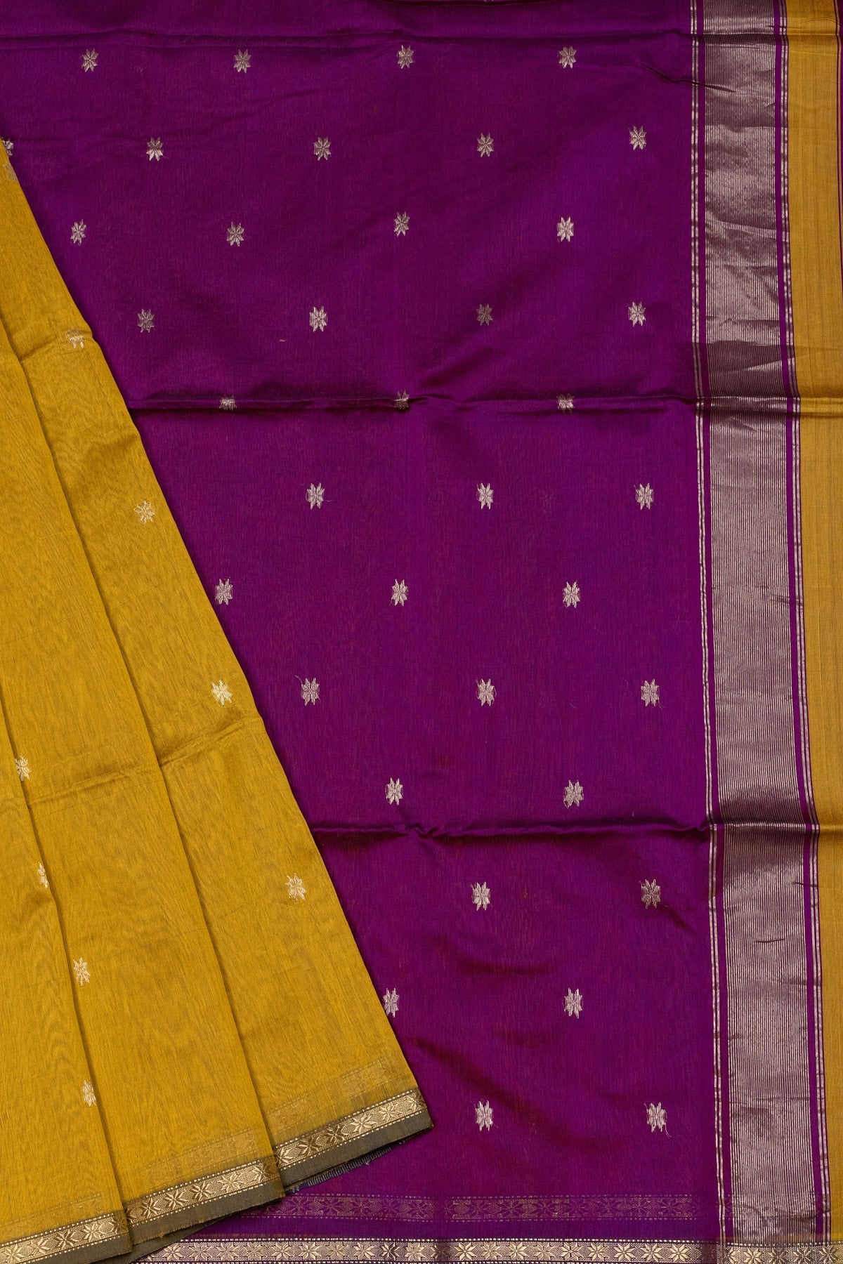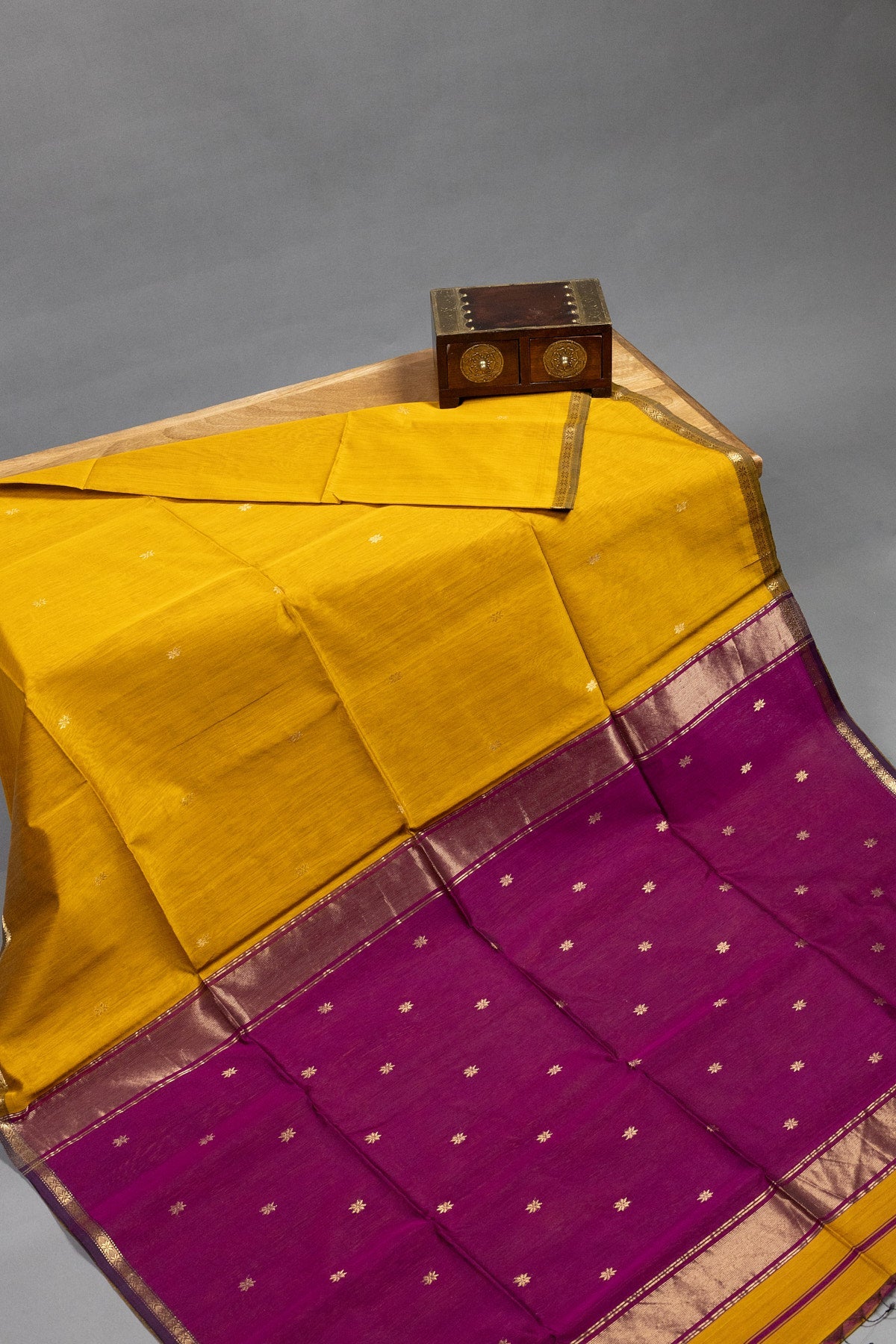 Yellow and Purple Maheshwari Silk-Cotton Saree With Sheer Butti - swadeshsouq.com