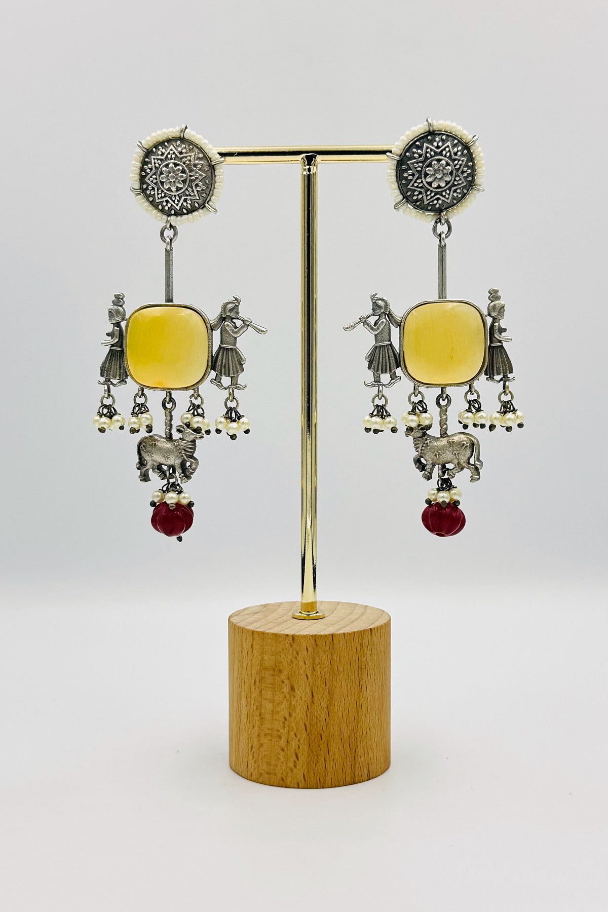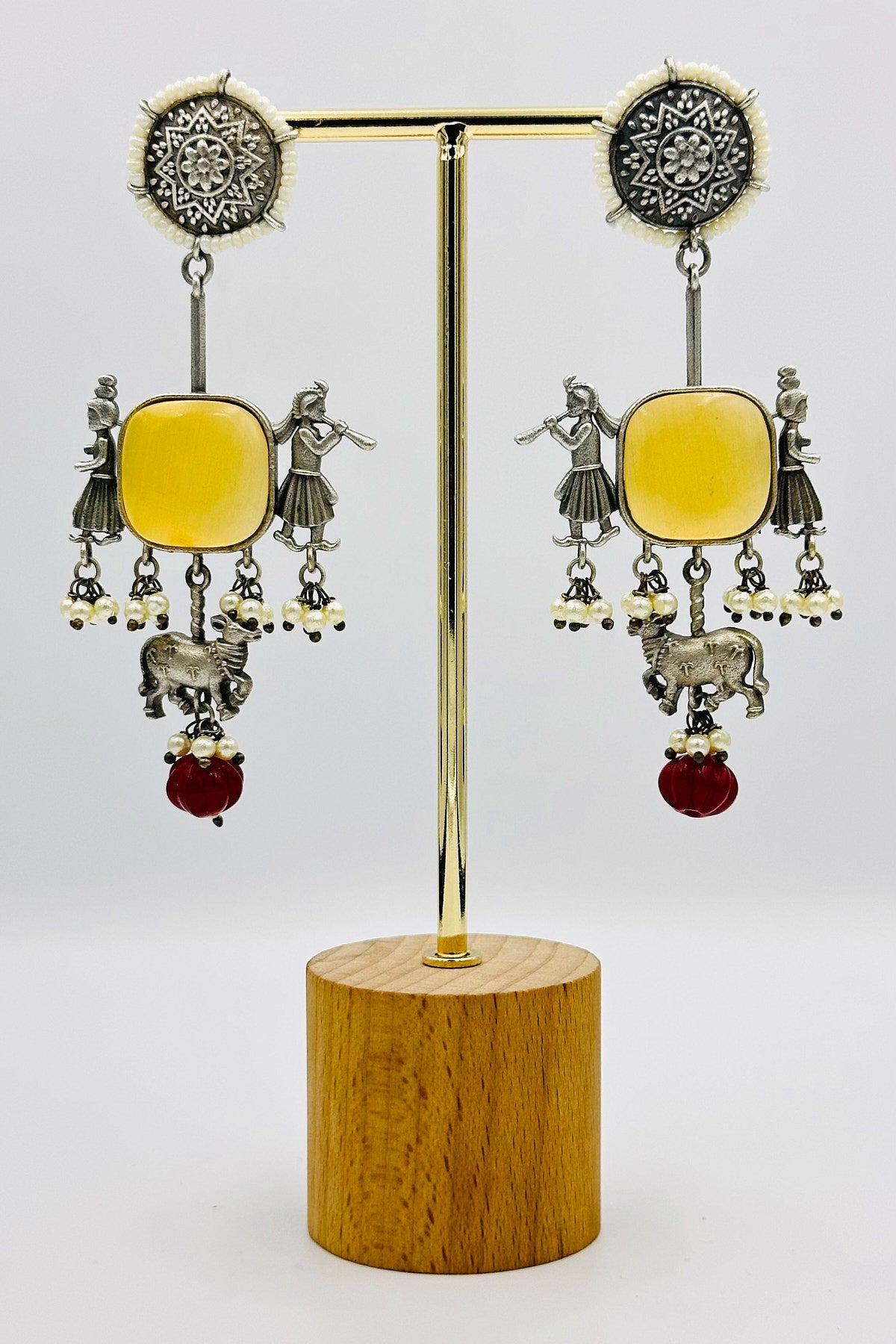 Yellow Silver Danglers with Artistic Intrigue - swadeshsouq.com